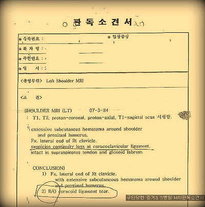 K병원에서는 엑스레이와 S병원에서 찍은 MRI를 바탕으로 8주 진단을 내렸다고 했다. 네 번째 증거는 바로 S병원 MRI판독 소견서이다.