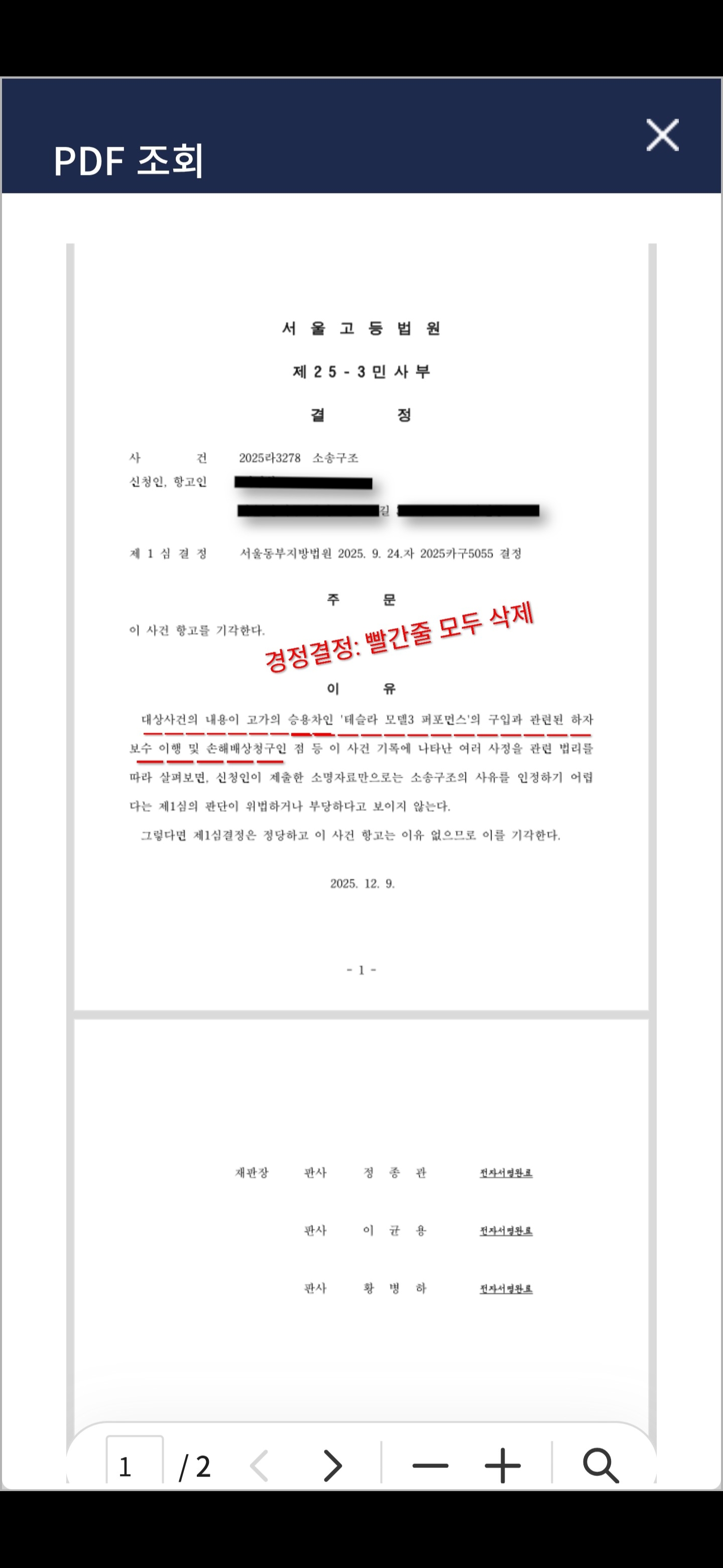 이에 즉시항고를 하였고 사껀을 담당한 서울 고등법원은 정말 어처구니없는 불법행위로 항고기각결정을 내렸습니다.