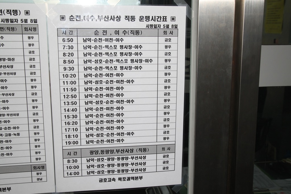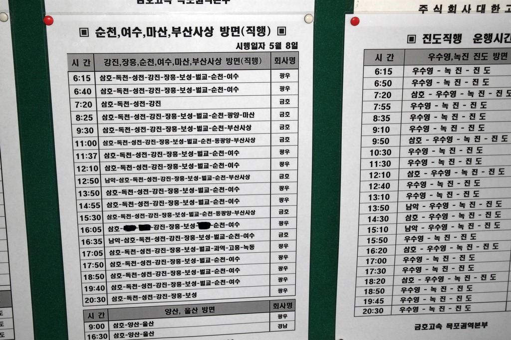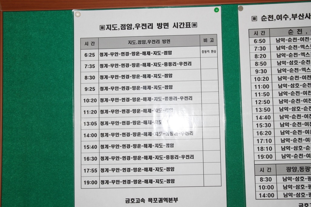 [운행정보]목포버스터미널 시간표(순천, 여수, 광양, 부산, 강진, 장흥, 보성, 울산, 해남,진도, 고창, 전주) 작성자광우지킴이|작성시간12.05.09|조회수2,893 목록 댓글 1 글자크기 작게가 글자크기 크게가 광주 직통 시간은 추후에 올리도록 하겠습니다. ,고 창 ,고창 다음검색 현재 게시글 추가 기능 열기 북마크 공유하기 신고 센터로 신고 댓글 댓글 1 댓글쓰기 답글쓰기 댓글 리스트 작성자섬진 | 작성시간 14.10.04 고속도로 개통으로 서민들의 부담이 줄어들었습니다. 댓글 전체보기