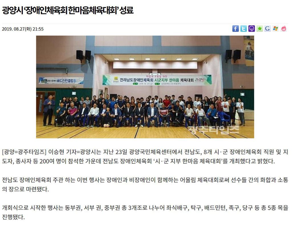 전남장애인체육회한마음체육대회/광주타임즈 작성자클라우드나인|작성시간19.09.10|조회수41 목록 댓글 0 글자크기 작게가 글자크기 크게가 다음검색 현재 게시글 추가 기능 열기 북마크 공유하기 신고 센터로 신고 댓글 댓글 0 댓글쓰기 답글쓰기 댓글 리스트