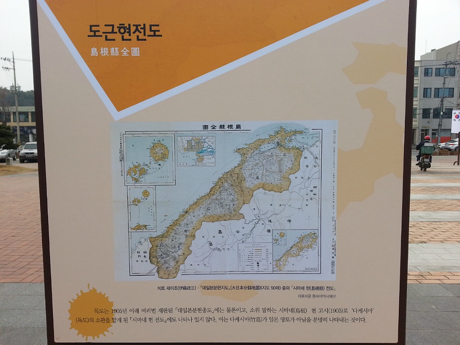 소위 말하는 시마네(島根) 현(縣) 고시(1905)로 ‘다케시마(독도)’의 소관을 맡게 된 ‘시마네현 전도’에도 나타나 있지 않다.