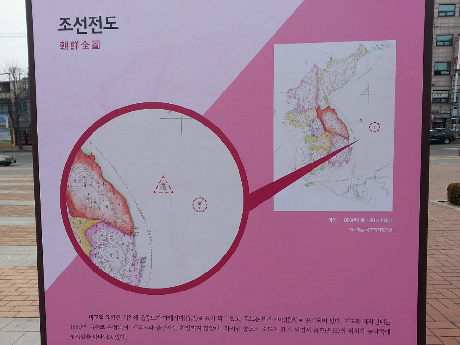 한국의 일부 영토와 일본 사이에 울릉도를 다케시마(竹島,죽도),