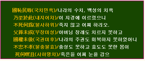 나라를 잃어버린 그 고통만은 견딜 수가 없습니다.