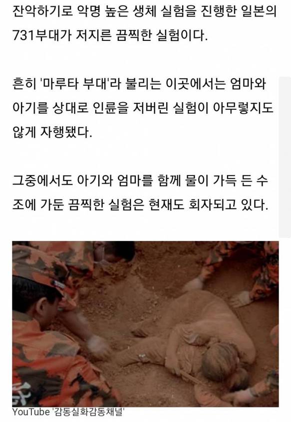 2차대전 당시 일제는 ‘방역급수(防疫給水)’라는 이름을 내걸고 1932년부터 1945년까지 세균폭탄을 만들려고 생체 해부 실험과 냉동 실험 등 인류사에 길이 남을 잔인한 생체실험을 자행했다.