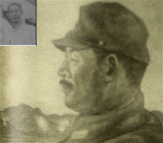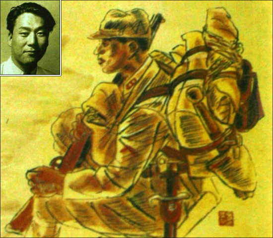 김기창=조선미전 총독상, 추천작가. 반도총후미술전 초대작가. 결전미술전 조선군보도부장상. 세종대왕 을지문덕 등 영정제작. 수도여사대 교수. 3.1문화상, 은관문화훈장, 국민훈장 모란장, 5.16민족상. 완전군장한 병사가 훈련 뒤 참시 휴식을 취하는 모습이다. 병사의 얼굴과 손에서 결전의 의지가 느껴진다.