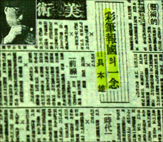 구본웅=조선미전 특선, 목일회 회원, 종합예술잡지 '청색지'발행. 1030년대 말부터 미술평론을 통해 내선일체와 황도선양 주창. 미 군정청 문교부 편수국 근무. "미술인은 적극적으로 역할을 다하여, 사변 승리를 위하여, 신동아 건설을 위하여, 미술의 무기화에 힘쓸 것이며 나아가 신동아 미술의 탄생을 꾀할 것", "미술인들이여! 우리는 황국신민이다. 가진바 기능을 다하여 군국에 보할 것"이라고 말했다.