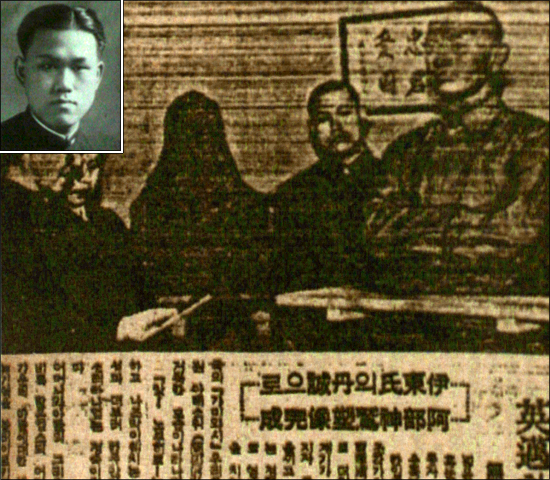 윤효중=조선미전 총독상. 대화숙 미술부 지도, 결전미술전 심사위원, 국전 심사위원. 홍익대 교수, 대한미협 부위원장, 예술원 회원. 이순신 민영환 이승만 세종대왕 조각상. 윤효중은 사상전향자 통제조직인 대화숙 미술부 화실에서 가미가제특공대의 소상을 제작하엿는데, 첫번째 작품이 당시 조선 총독 아들인 '아베소위상'이었다. 1945년 4월 27일, 아베 소위의 어머니이자 총독 부인인 미츠코가 비서관, 법무국장, 형사과장 부인들을 데리고 대화숙 미술부를 방문하여 약 3시간이나 방안에 머문 후 관저로 돌아갔는데, 이 자리에서 윤호중은 이 소상을 며칠 안으로 총독 관저 소위의 영전에 봉납하겠다고 밝혔다.