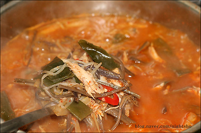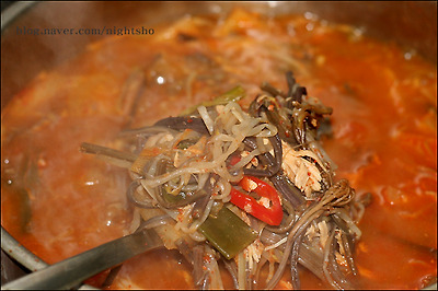 물붓고 삶아 그 국물에 보통 끓여내곤한데 ~ 저흰 그 기름기 둥둥뜬 육수를 그다지 좋아하질 않아
