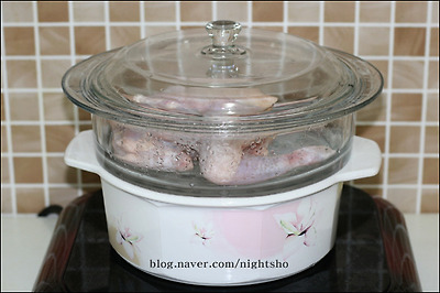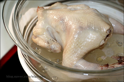- 숙 주 : 끓는 물에 소금 약간 넣고 살짝 데쳐낸다. - 닭은 압력밥솥에 넣고 잠길정도의 물을 넣고 삶는다.