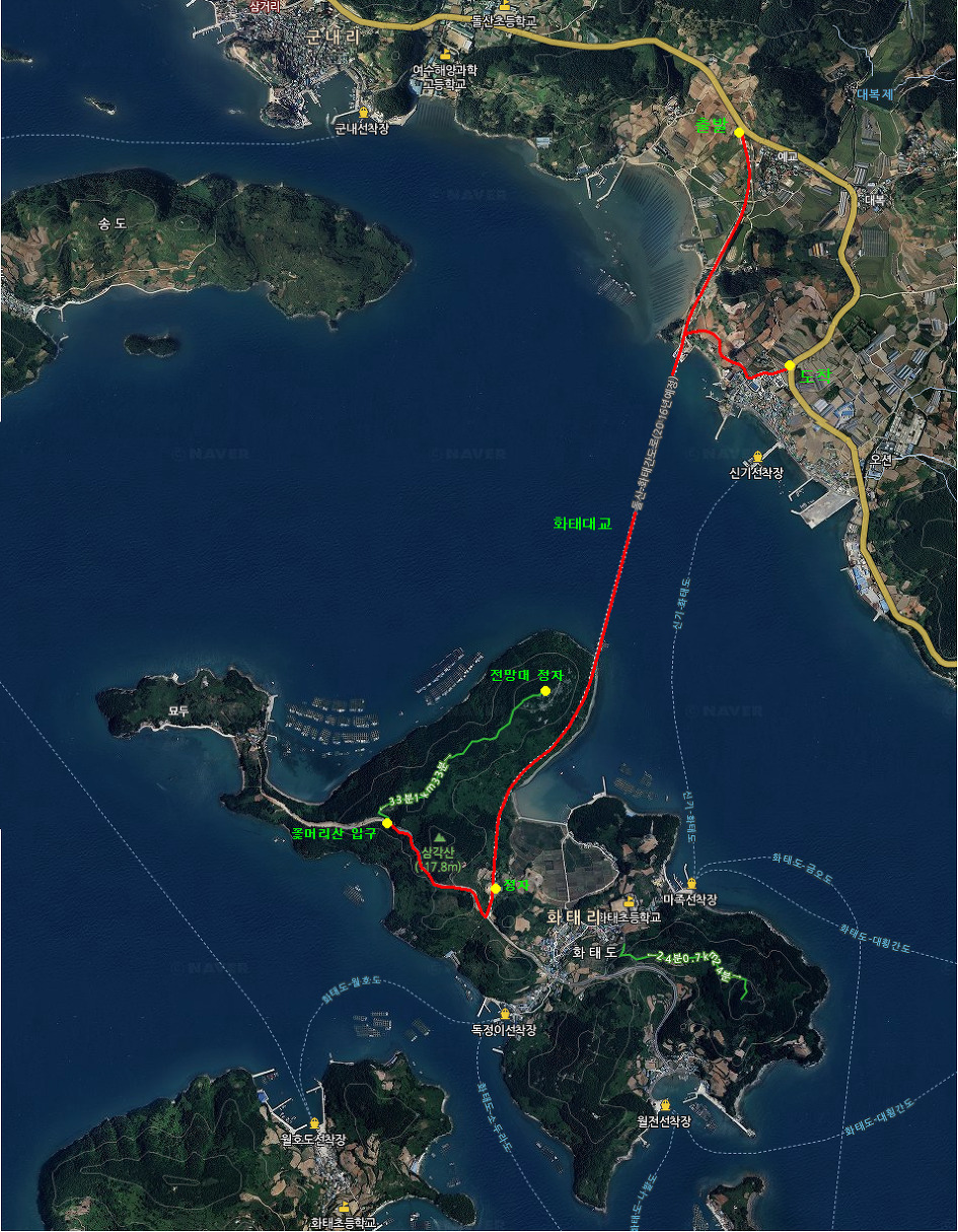 | 2 | 산행지명 | 여수 화태도 갯가길 | 해 발 | 꽃머리산 115m | |||