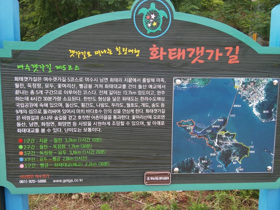 화태갯가길은 여수갯가길 5코스로 여수시 남면 화태리(화태도) 치끝에서 출발해 마족,월전,