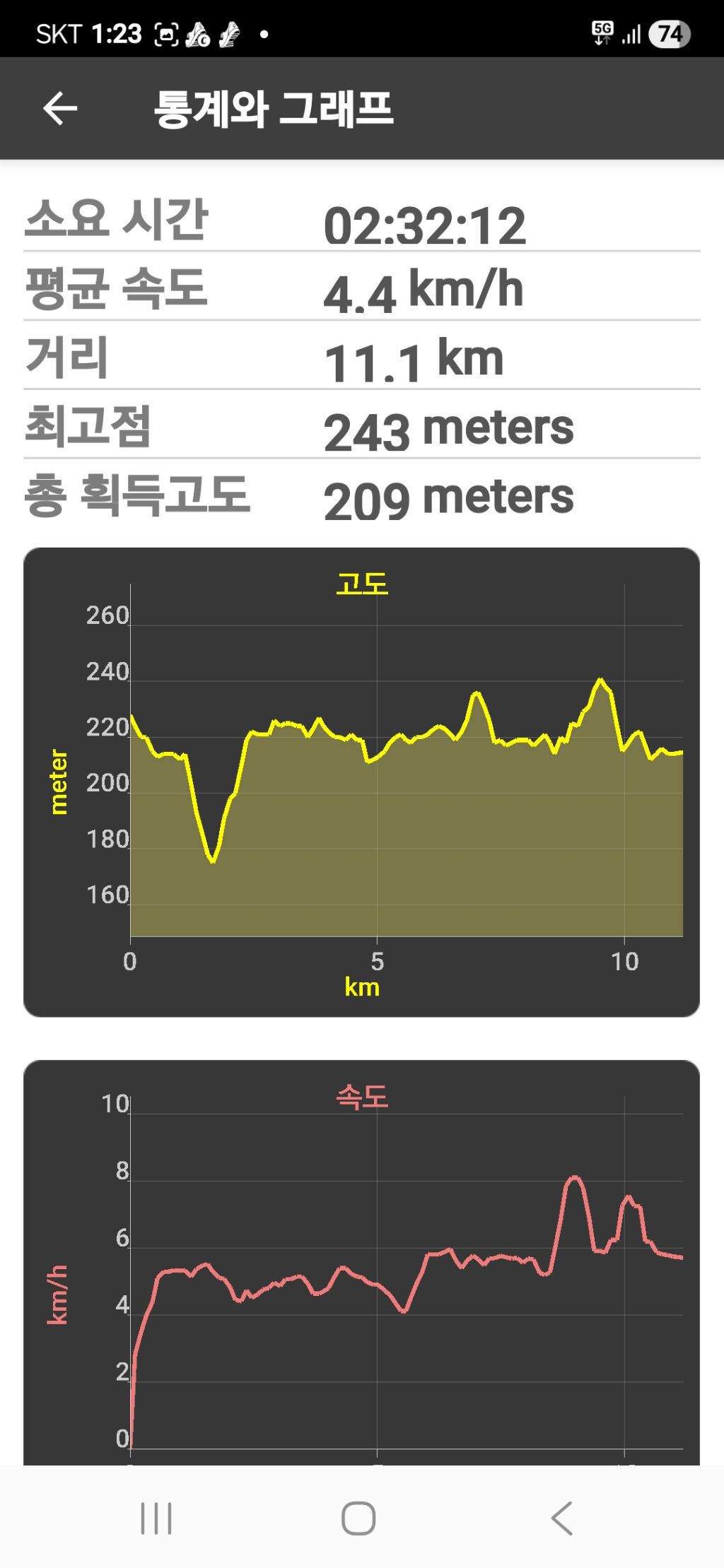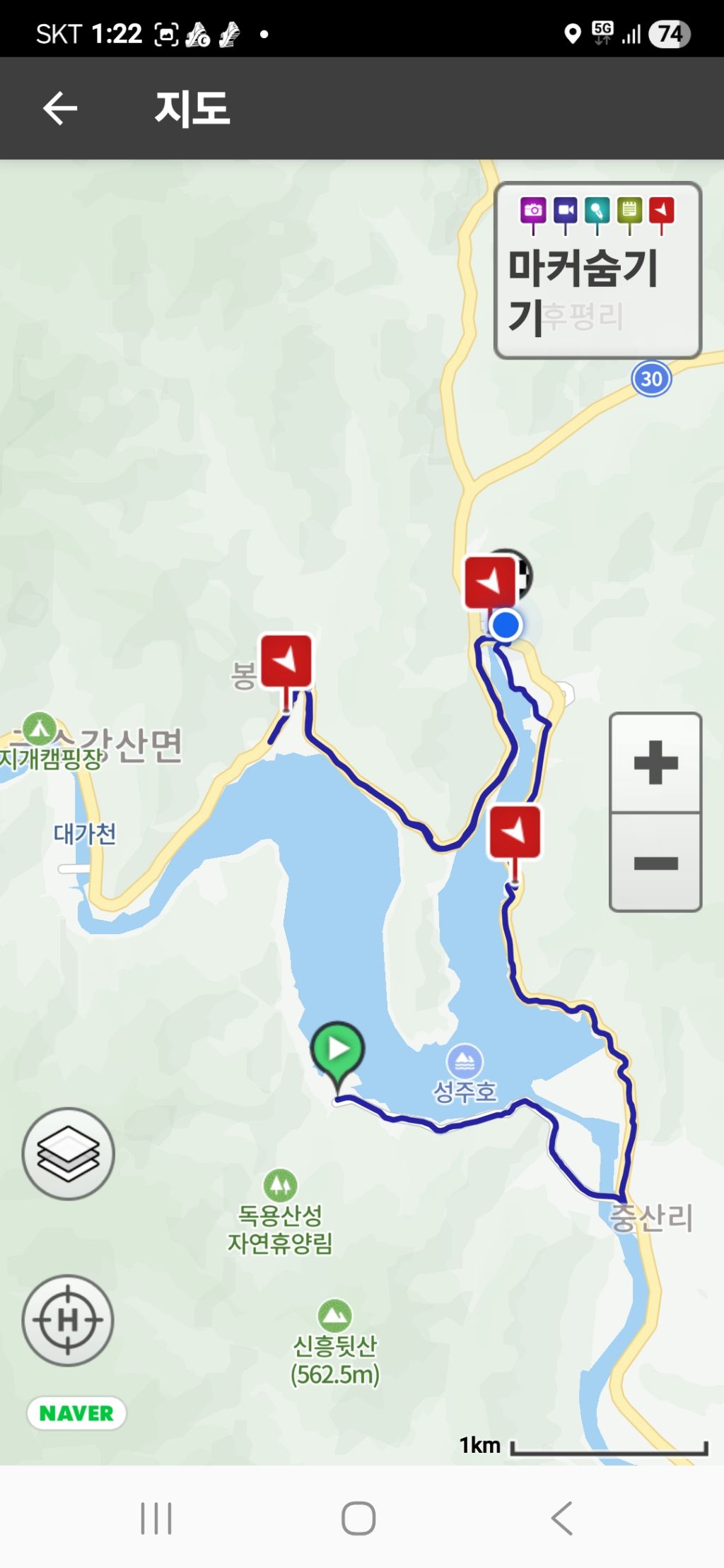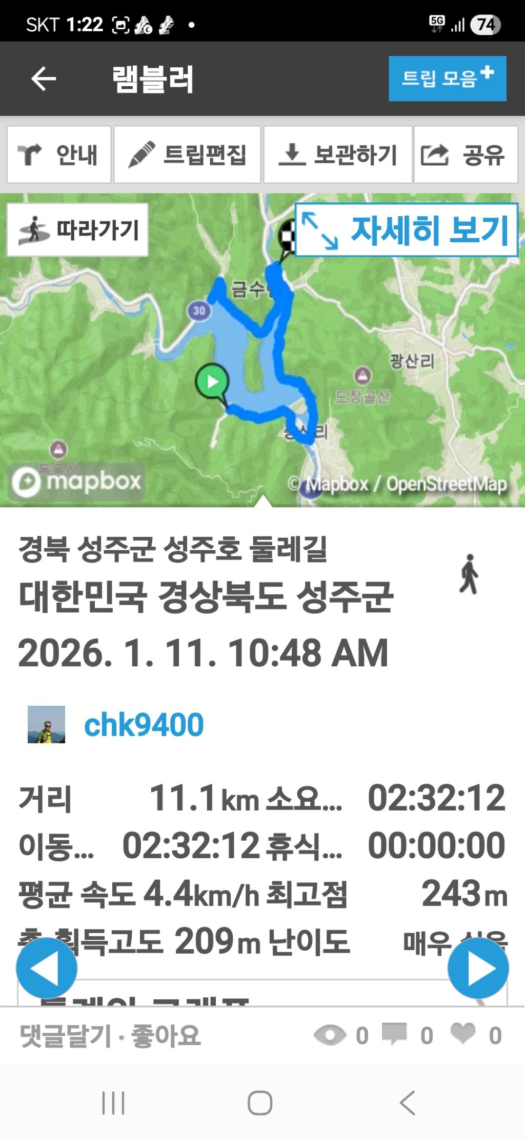 그러거나 말거나 나는 산악회에서 제시한 7km에 보테, 4km를 초과하여 걷다보니 성주호 둘레길을 2/3는 소화한 셈