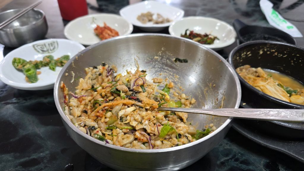 비지와 각종 야채를 넣어 비빔밥에 청국장을 제공하면서도, 어찌나 맛있고 8,000원 밖에 안하는 착한 가격에 경상도 음
