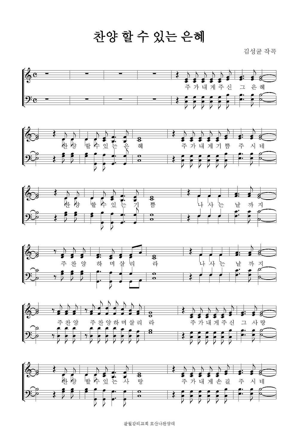 찬양할 수 있는 은혜(김성균/김성균 여성성가 합창곡집)