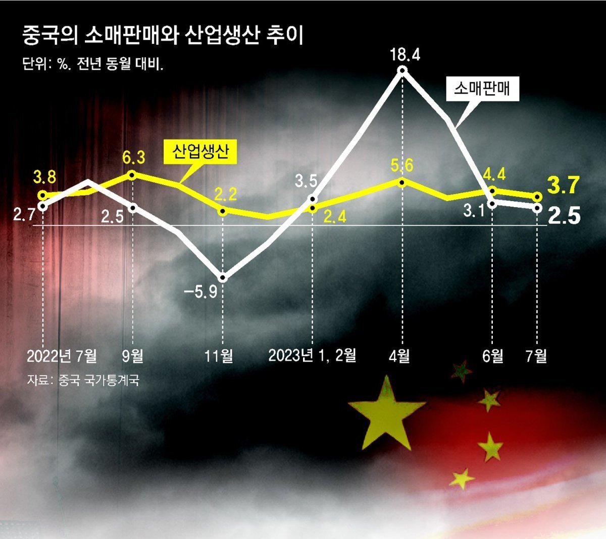 부동산에 이은 금융업계의 연쇄 부도 위기는 중국 리스크를 증폭시키는 악재다. 지난달 중국의 소비자물가지수(CPI)는 2년 5개월 만에 마이너스(―0.3%)로 하락하며 ‘디플레이션 공포’를 확산시켰다. 어제 나온 7월 소매판매와 산업생산도 모두 시장 전망치를 밑돈다. 청년실업률은 아예 발표조차 되지 않았다. 21.3%까지 치솟은 실업률이 신규 대졸자들의 대거 유입으로 더 높아질 것으로 예상되자 중국 당국이 발표를 중단해버린 것이다. 중국 경제에 대한 불안과 불신만 더 키운 상황이다.