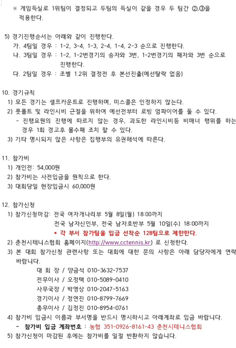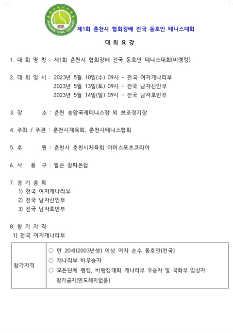 제1회 춘천시 협회장배 전국 동호인 테니스대회(비랭킹) 작성자최의선|작성시간23.04.15|조회수85 목록 댓글 0 글자크기 작게가 글자크기 크게가 제1회 춘천시 협회장배 전국 동호인 테니스대회(비랭킹) 다음검색 현재 게시글 추가 기능 열기 북마크 공유하기 신고 센터로 신고 댓글 댓글 0 댓글쓰기 답글쓰기 댓글 리스트