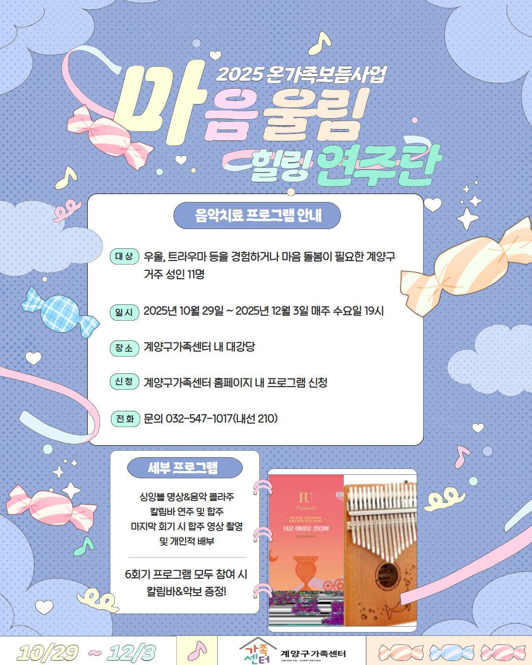 6회기 참여시 칼림바 및 악보 증정하니 많은 신청 부탁드립니다🥰