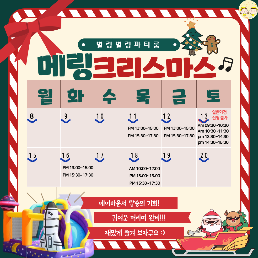 -이용일정 : 12월 11일~18일 (13일은 일반가정 신청불가합니다!)
