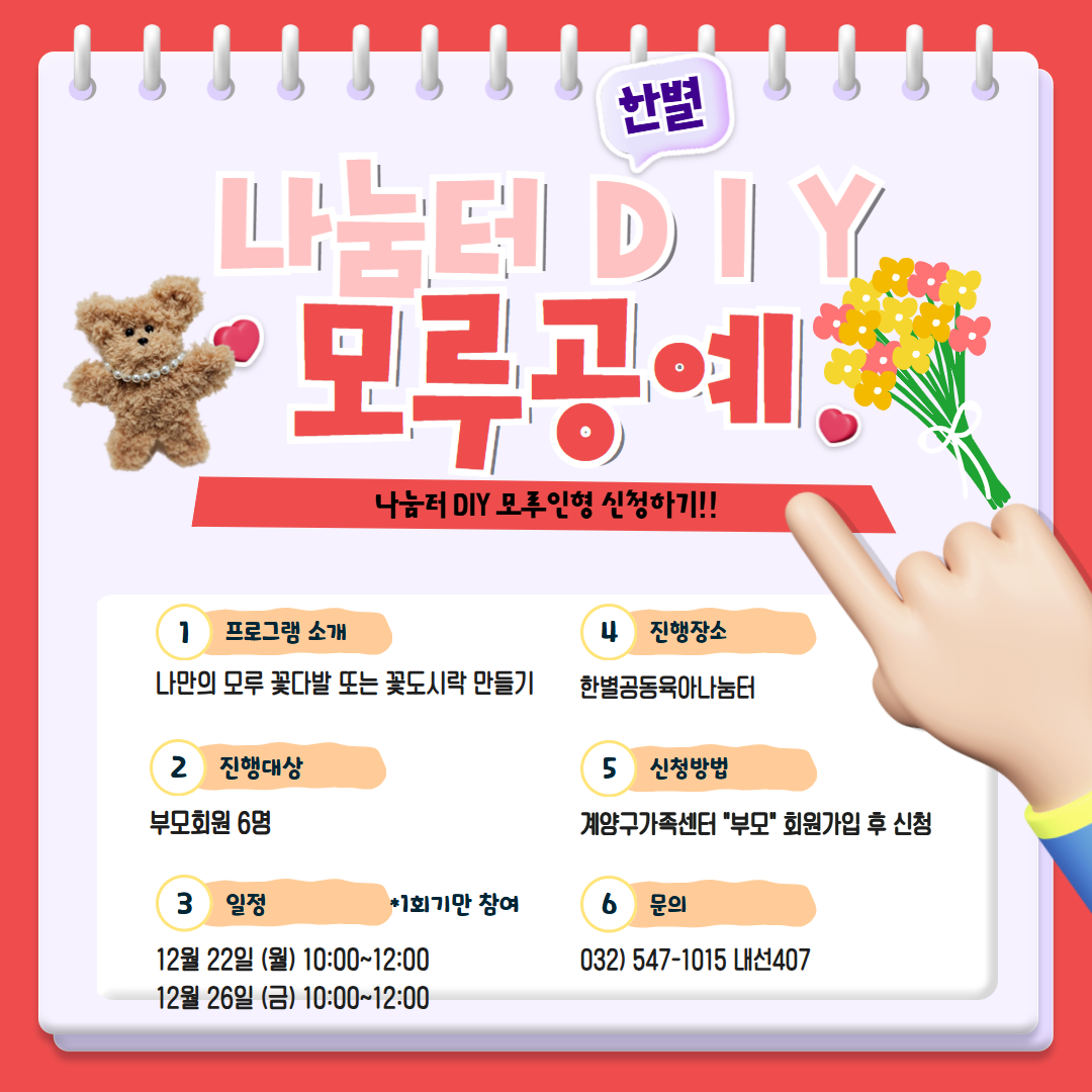 ※ 전화 신청 안됩니다. 반드시 계양구가족센터 홈페이지를 통해 신청해주세요.