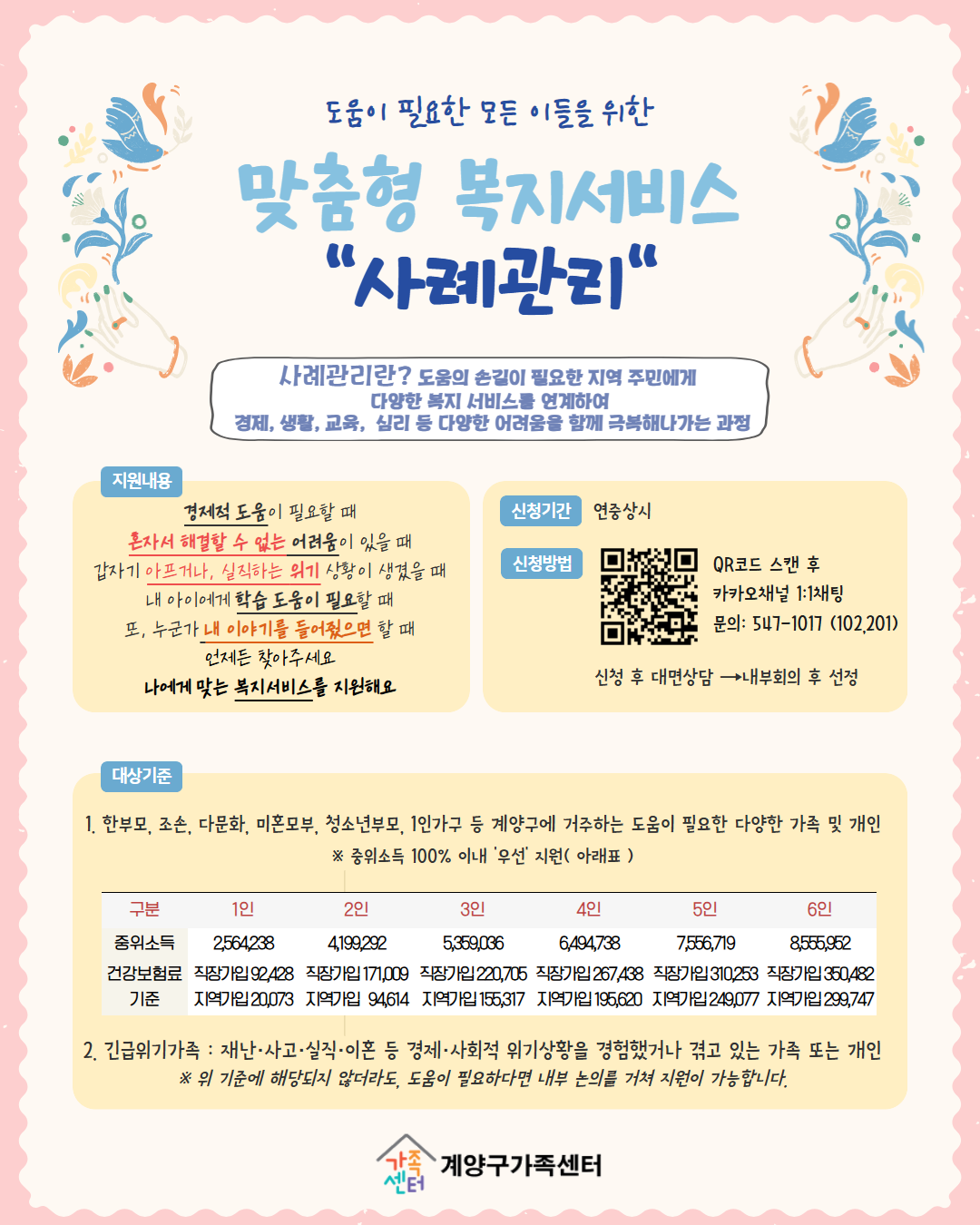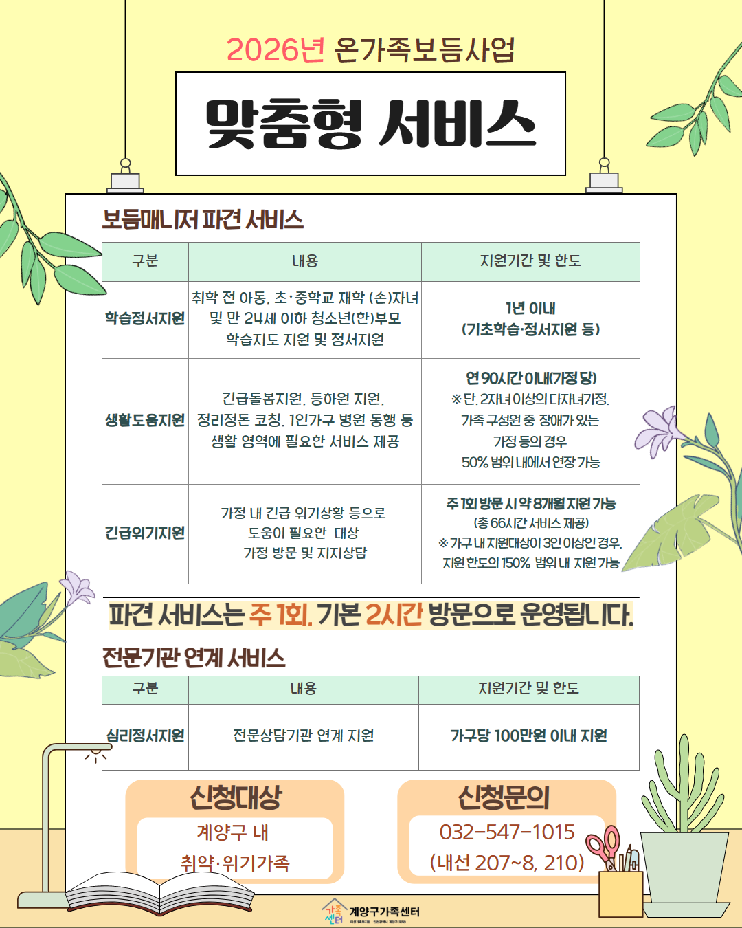 안녕하십니까! 계양구가족센터에서는 가정에서 직접 해결하기 어려운 어려움들을