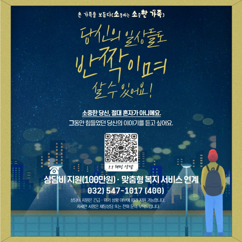 접수 및 사례관리 등록 후 상담비를 총 100만원까지 지원하고 있습니다.
