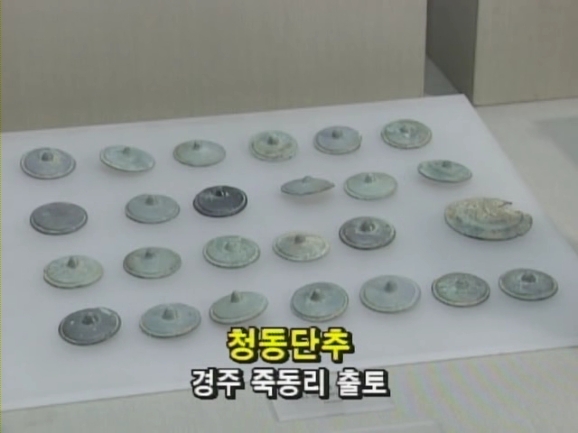 청동단추가 소장돼 있다고 하는 경주 박물관을 찾았다. 청동단추의 한반도 출토상황을 파악하면 고조선 한반도 세력권을 알 수 있을 것이다. 경북 영천 어은동에서 다수의 청동단추가 나왔다. 그런데 영천 어은동보다 더 남쪽지역이 있었다. 경주 죽동리에서 출토된 청동단추다. 청동단추가 출토된 경주 죽동리 마을. 지금은 논밭으로 변해버린 이곳에 오래전 청동기 마을이 있었다. 그리고 그곳엔 고조선의 문화가 있었다. 청동단추는 내몽고 자치주 적봉에서 한반도 남부까지 폭넓게 분포되어 있다. 이 청동단추와 비파형 동검이 공통적으로 출토되는 지역이 바로 고조선의 전체 세력권이라 할 수 있다.
