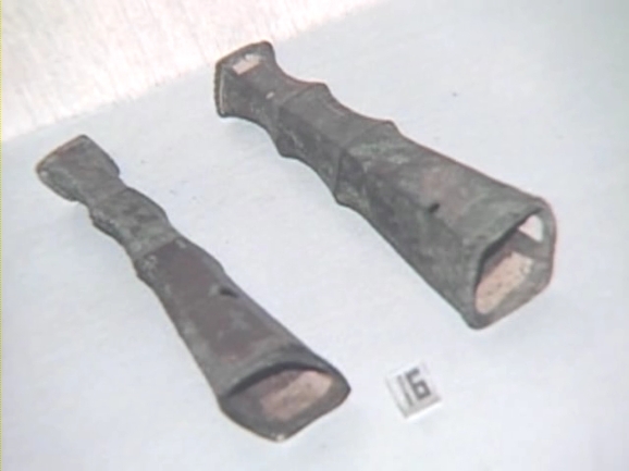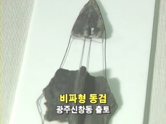 유물 중에서 눈길을 끄는 청동기가 있다. 바로 이 비파형 청동검. 손잡이 부분은 발견되지 않았지만 몸체 부분의 특이한 모양은 잘 남아 있다. 청동검과 함께 나온 유물들로 보아서 이 검을 사용한 사람은 꽤 높은 신분이었을 것이다. 그런데 비파형 동검이 발견된 곳이 또 있었다. 국립광주박물관에 소장돼 있는 이 동검은 광주 신창동에서 출토됐다. 동검의 조각은 비파형 동검의 것이 분명했다. 부여 송국리와 광주 신창동에서 나온 비파형 동검은 모두 완전한 형태가 아니다. 비파형 동검의 완형은 어떤 모습인지 알기 위해 청동기 전문가인 이용문교수를 찾았다.
