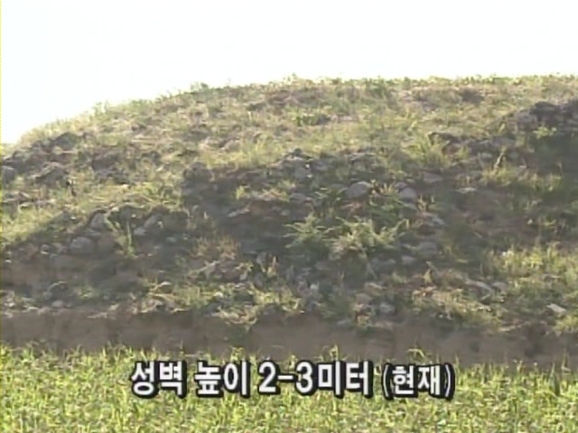남아 있는 성벽을 둘러보았다. 성벽의 겉면엔 돌이 차곡차곡 쌓여져 있다. 그러나 완전한 석성은 아니다. 돌과 돌 사이의 틈은 흙으로 메꿔 놓았다. 현재 남아있는 성벽의 폭은 4-5미터. 성벽 위에서 농사를 지을 정도로 폭이 넓은 편이다. 그리고 현재 남아있는 성벽의 높이는 2-3미터에 이른다. 성벽의 구조는 양옆에 돌을 쌓고 가운데 흙을 쌓아 올린 형태다. 이렇게 지가영자 성은 폭이 5미터나 되는 성벽을 빙 둘러 세운 원형의 성터였다. 성의 면적은 총 3만평, 성안에는 당시 많은 주민들이 살고 있었던 것으로 추정되고 있다.