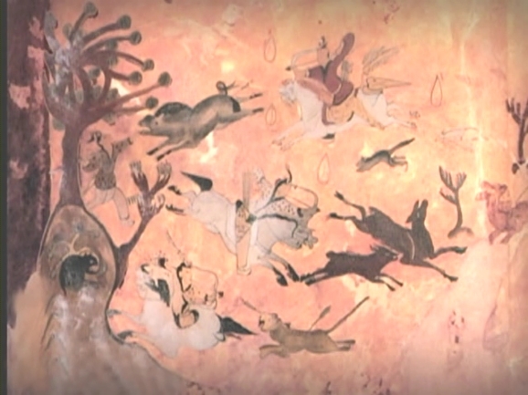 현재 단군을 알 수 있는 기록은 단군신화가 유일하다. 이 단군신화를 고대의 사람들도 알고 있었을까? 중국 집안에서 발견된 고구려 벽화고분 장천 1 호분, 이 무덤의 앞방 북쪽 벽에는 수렵도가 그려져 있다. 오랜 세월이 지나면서 희미해진 그림의 형태를 되살려 보았다. 신단수로 보이는 나무 중간에 굴속에는 곰이 있고 굴밖에는 호랑이가 사냥꾼이 쏜 화살에 맞는다. 곰과 호랑이 이는 단군신화를 상징적으로 표현한 것이다
