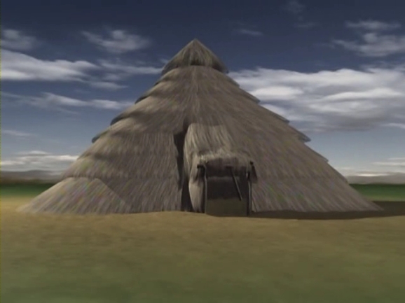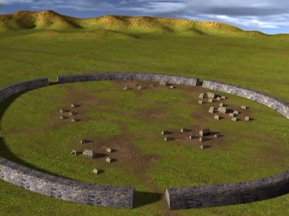 이것은 청동기 시대의 주거지터다. 이렇게 성안에서 발견된 집자리는 모두 200개에 이른다. 집자리의 흔적을 토대로 청동기 시대의 집을 복원해 보았다. 집의 모양은 모서리가 둥근 장방형으로 네귀퉁이에 주기둥을 세우고 보조기둥으로 지붕을 받쳤을 것이다. 성의 규모로 보안 성안에는 모두 600자리의 집터가 있었을 것으로 추정된다. 그렇다면 성의 주민은 적어도 천명이상이었을 것이다.