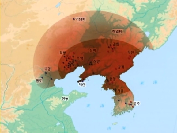 고조선은 과연 어디에 있었을까요? 고조선의 영역에 대해서는 정확한 기록이 없기 때문에 현재까지도 다양한 주장이 제기되고 있습니다. 그 중에서도 가장 유력한 가설은 세 가지로 요약됩니다. 우선 고조선이 현재의 중국 요하를 중심으로 이 요녕 지방에 있었다는 주장이 있습니다. 일면 요녕설입니다. 두 번째로는 평양을 중심으로 한반도 북부에 자리 잡고 있다는 주장이 평양설입니다. 이것은 현재 북한학자들의 주장이기도 합니다. 그리고 세 번째는 고조선이 처음에는 요하를 중심으로 요녕지역에 있다가 중국의 침략에 의해 평양지역으로 밀려났다는 주장도 있습니다. 자, 고조선이 어디에 있었는가 하는 의문을 풀기 위해 우리는 고조선의 유물 중에서 가장 대표적인 유물을 추적해 보기로 했습니다. 그것은 바로 이 비파형 동검입니다.