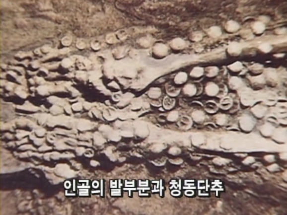 인터뷰) 청동기가 그 당시에 희귀하고 일부 특수 계층만 신분적으로 위에 있던 사람들이 사용했기 때문에 신분을 상징하는 하나의 의기가 아니겠느냐 이렇게 볼 수 있고 또 일부지역에서는 청동기가 산중턱에 자갈밭이라든지 이런데서 나오는 경우가 있습니다. 그런 것을 매남유적2)이라고 합니다. 그런 곳에서의 청동기를 소유했던 사람들이 집단제의, 제사 활동을 할 때 매납 묻는 풍습이죠. 그 당시에는 청동기를 소유했던 그 당시 상당한 세력가들이 주재했던 제사용으로 사용했을 가능성도 대단히 높습니다.
