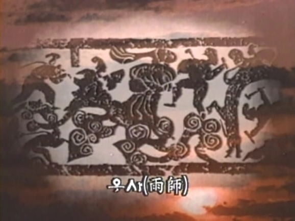 그런데 무씨사당의 석실에는 단군신화와 거의 비슷한 내용의 그림이 있다. 이것은 환웅이 지상에 내려오는 모습을 표현한 것이다. 환웅과 함께 지상에 내려온 인물로는 나팔을 입에 대고 바람을 만드는 풍백(風伯), 망치를 들고 벼락을 일으키는 뇌공 그리고 비를 만드는 우사의 모습도 보인다. 모두 네 개의 돌로 이루어진 이 그림은 이제 환웅이 다스리는 지상세계를 표현하고 있다. 여기에 곰과 호랑이가 등장한다. 2세기 무렵 이 중국 산동성 지역에서도 단군신화를 알고 있었던 것이다.