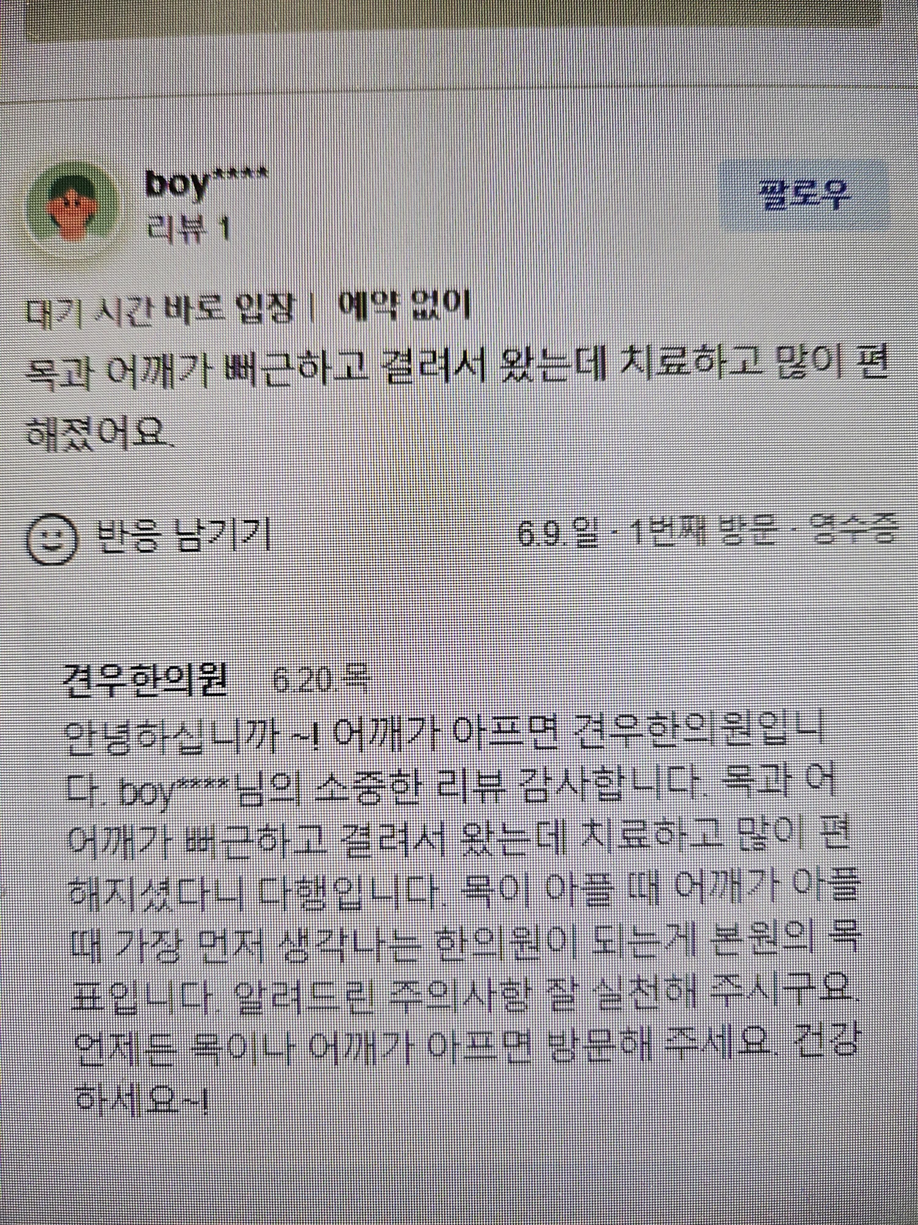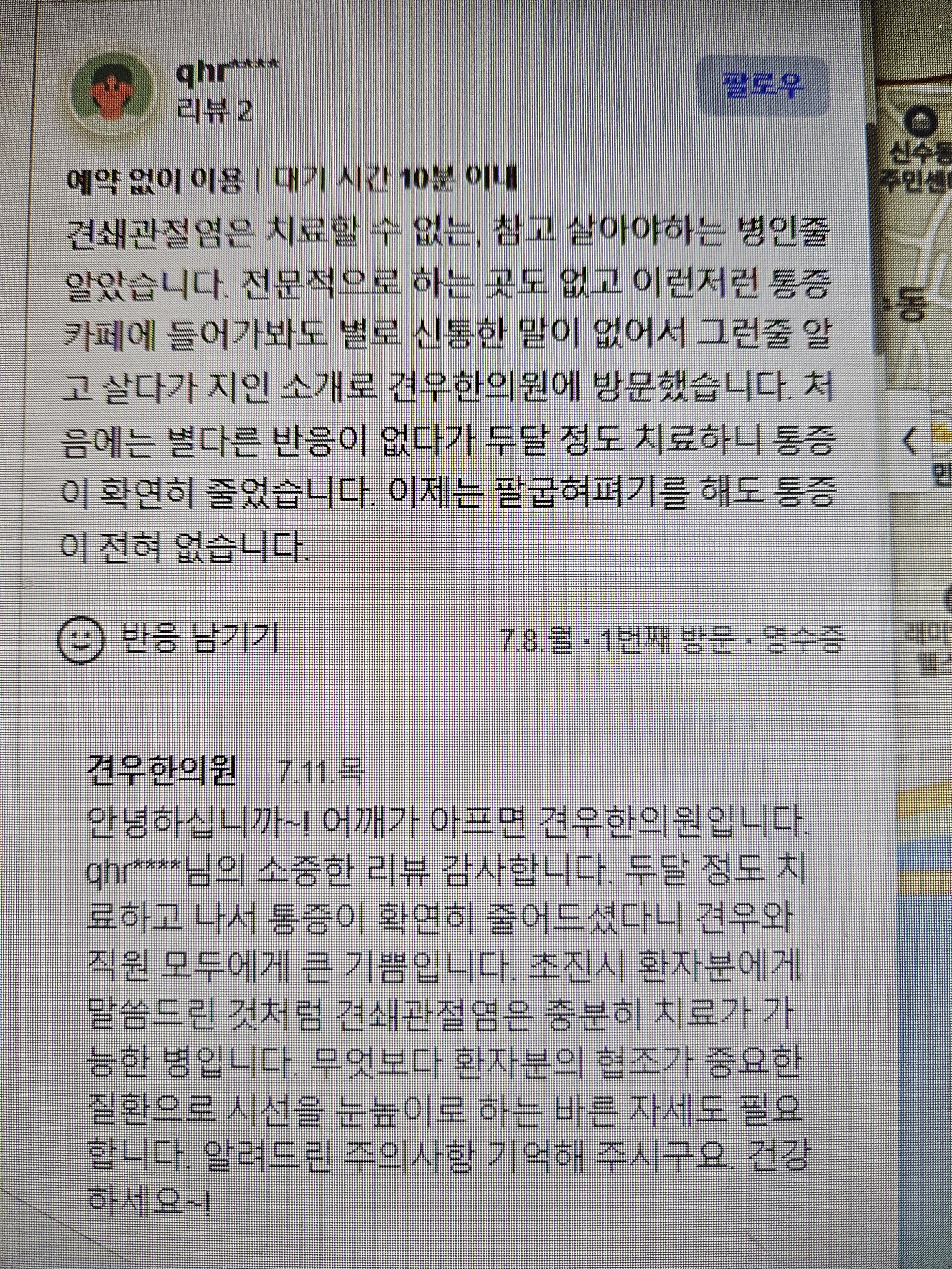 어깨가 전혀 아프지 않습니다.