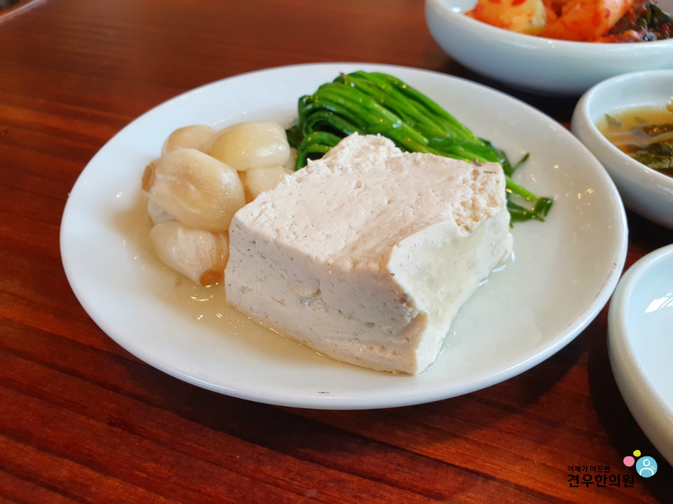 두부, 삶은 부추, 삶은 마늘