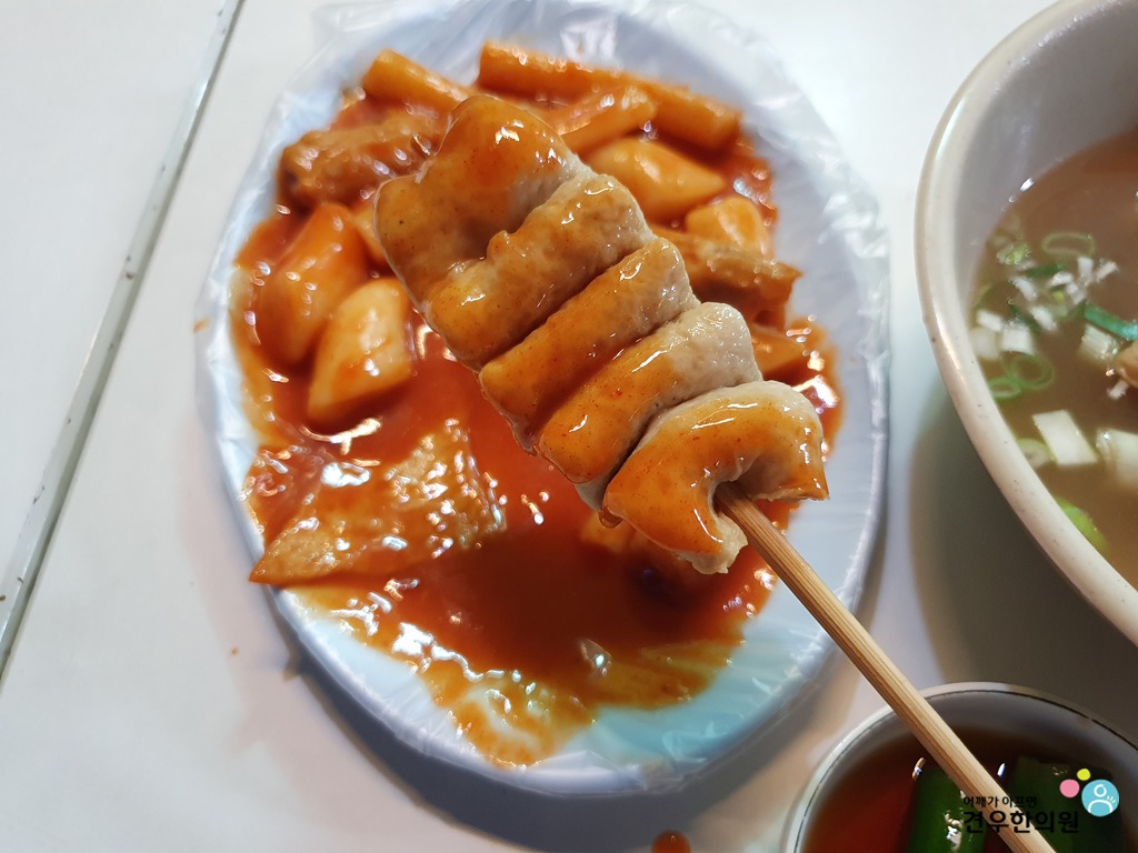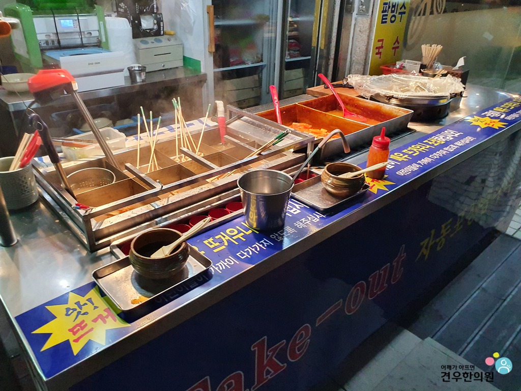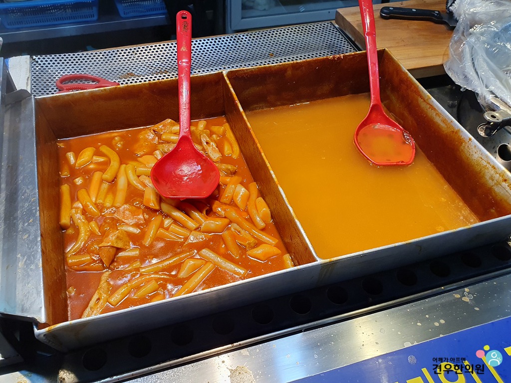 오뎅, 떡볶이, 순대가 보입니다.