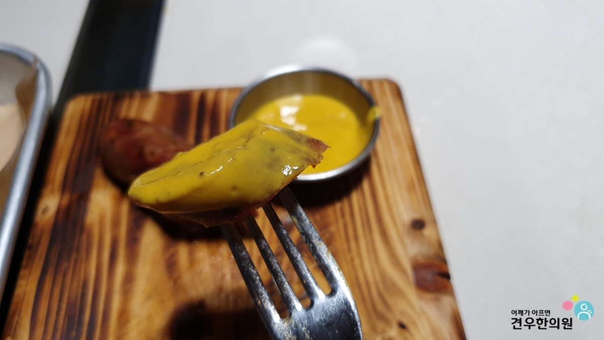 겨자 소스 등으로 변화를 주는 것도 좋습니다.