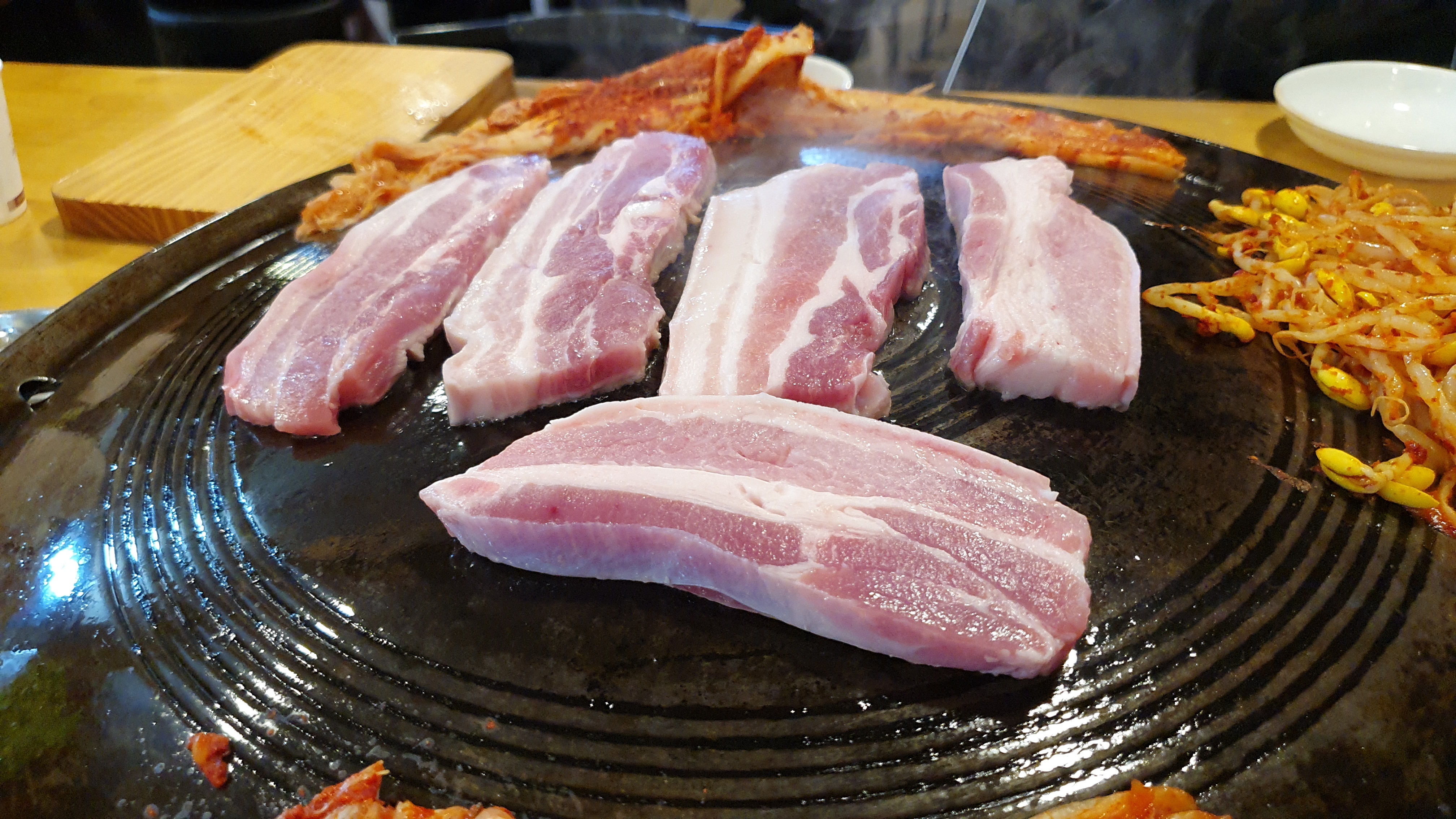 이제 잘 달아오른 불판에