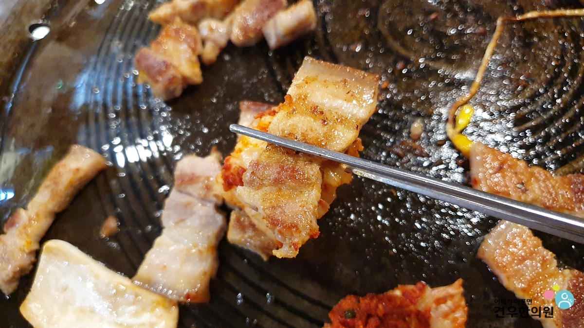 삼겹살을 올려주면 됩니다.