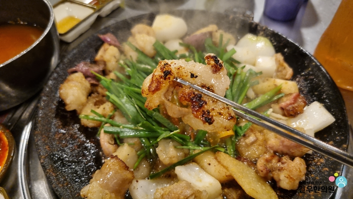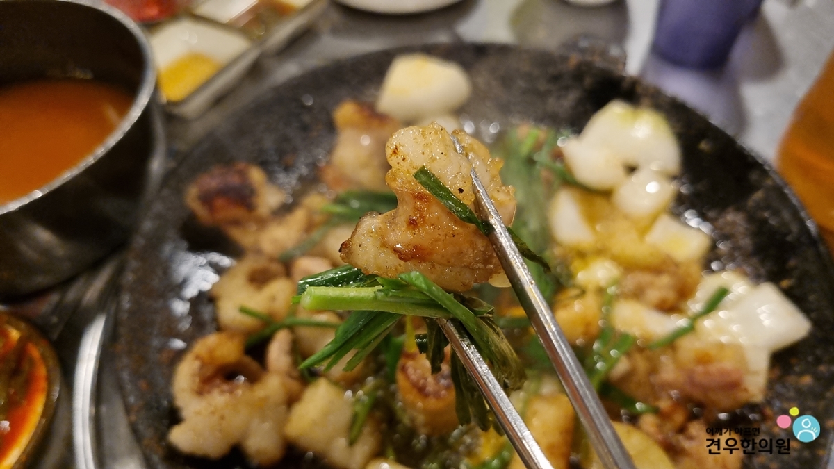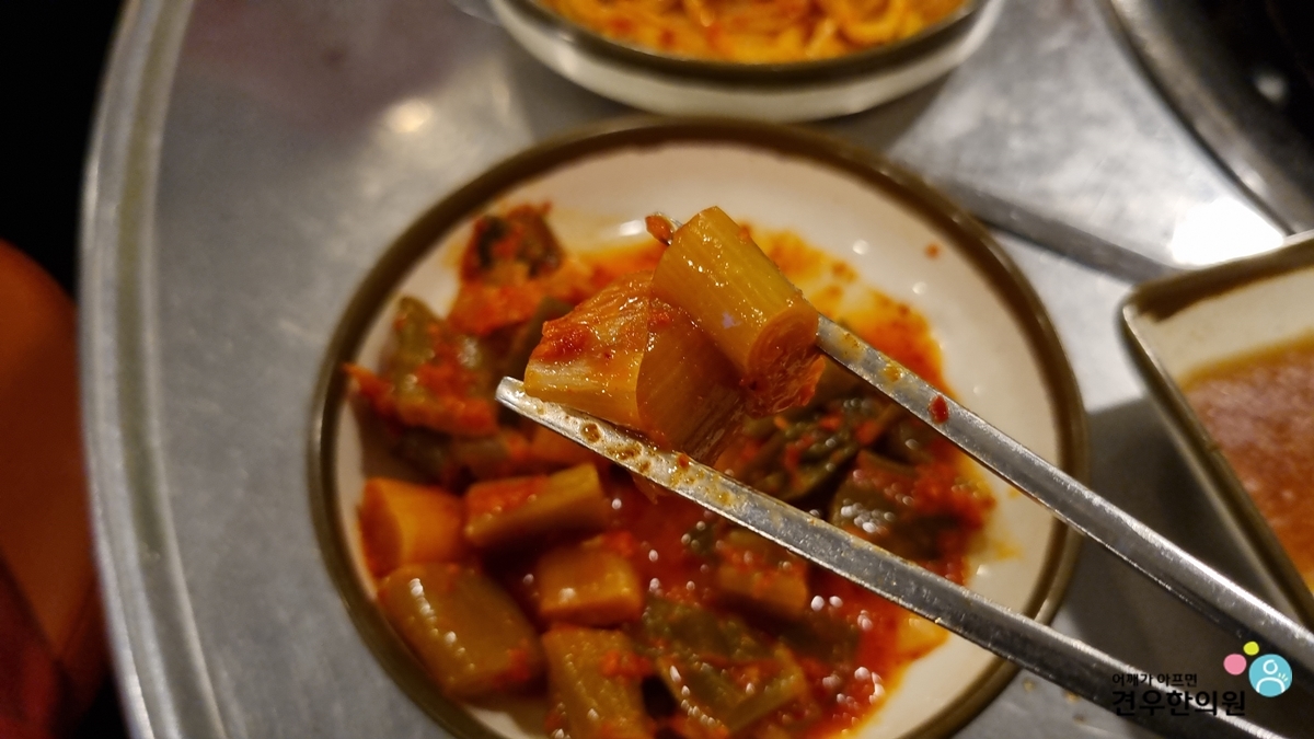 대창을 대파김치에 곁들여 먹으면 똭~!