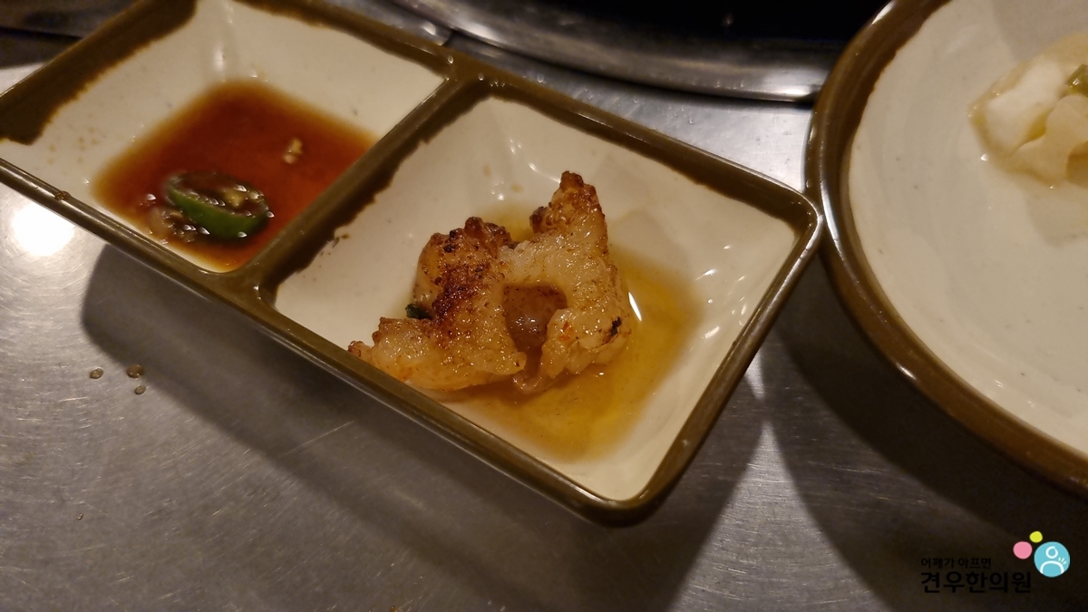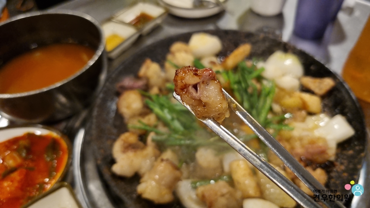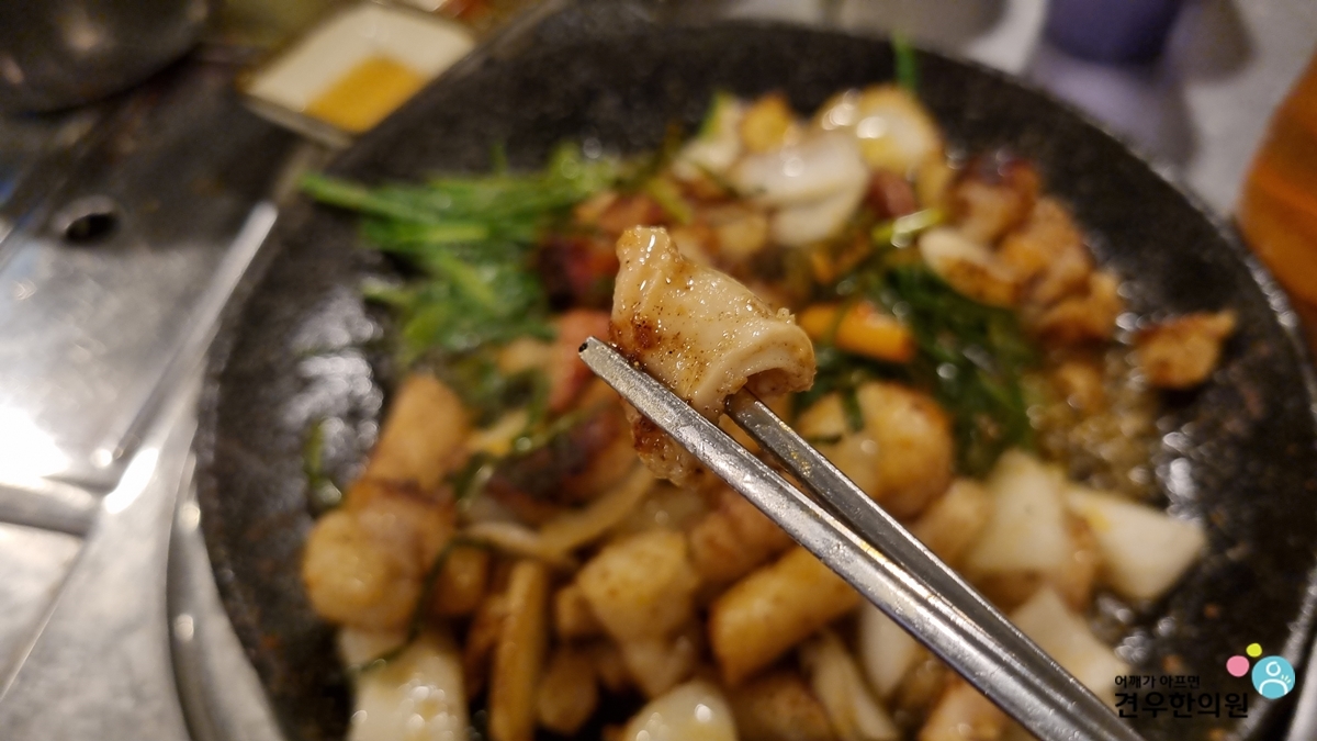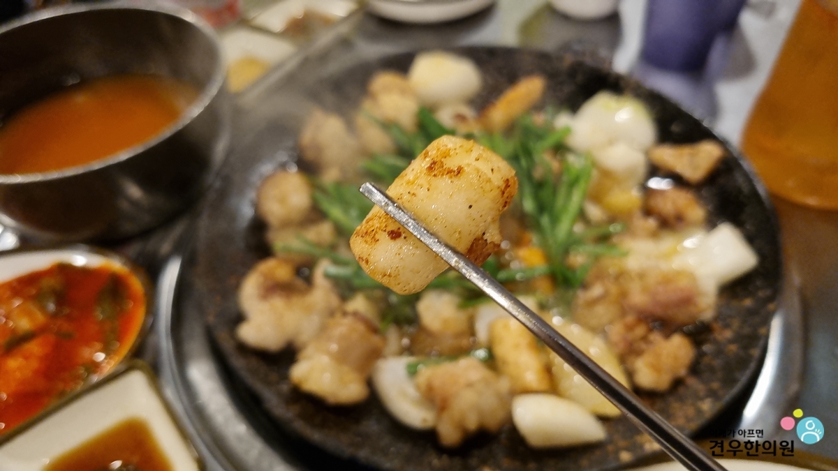 기름즙이 뚝뚝 떨어지는 내장과 더불어