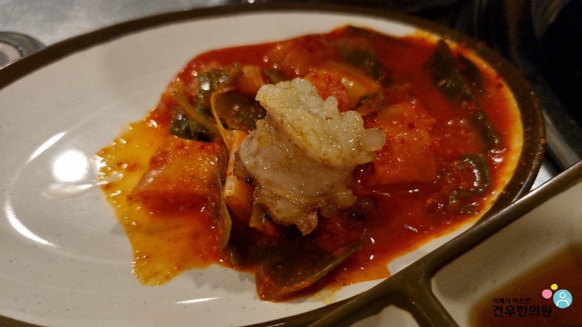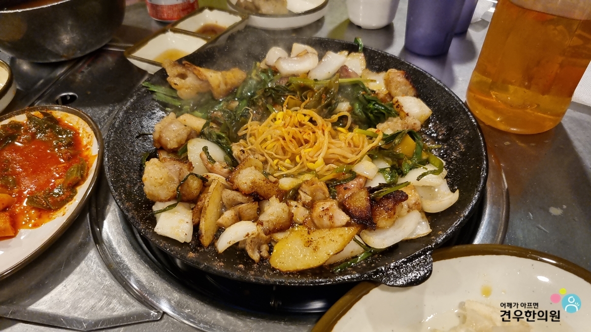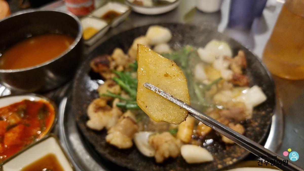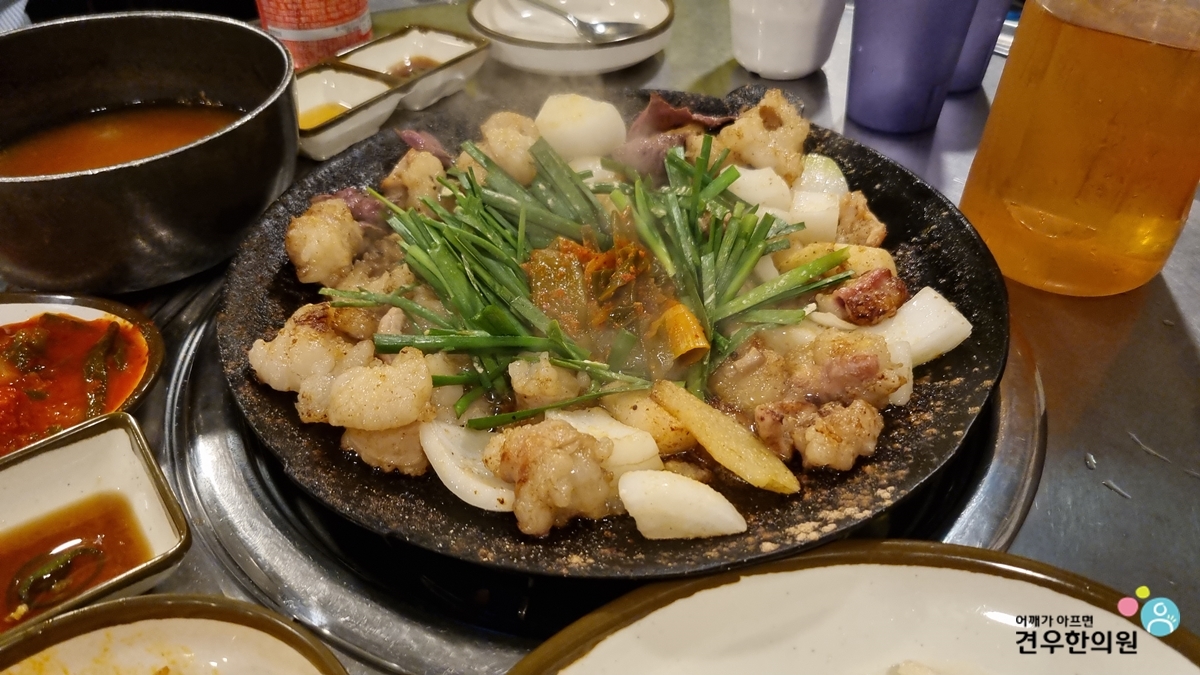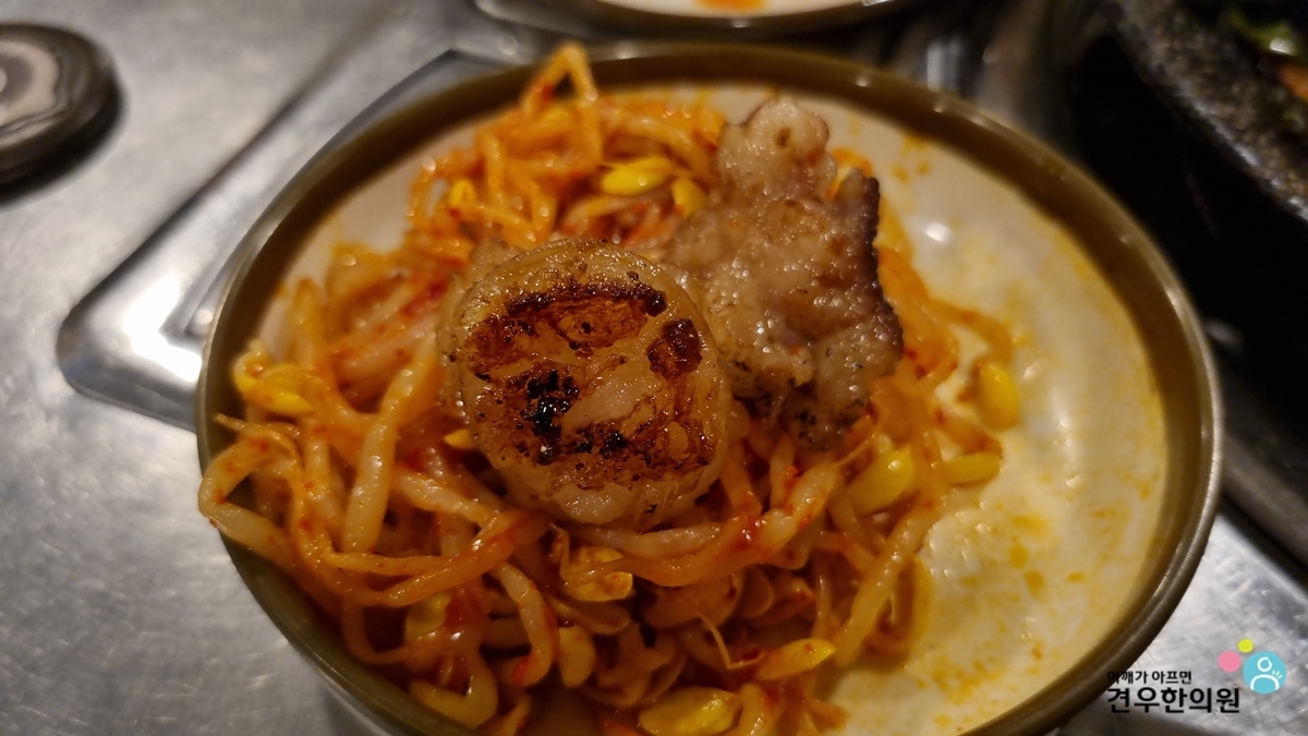 기름즙이 뚝뚝 떨어지는 내장과 더불어