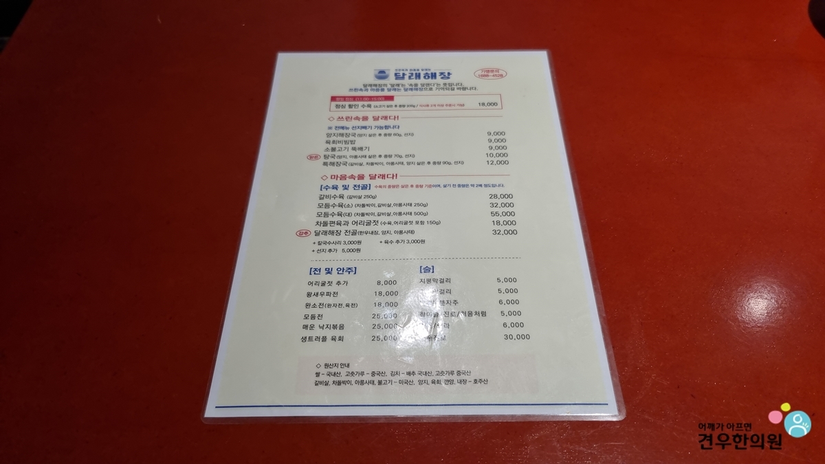 달래해장 메뉴, 가격