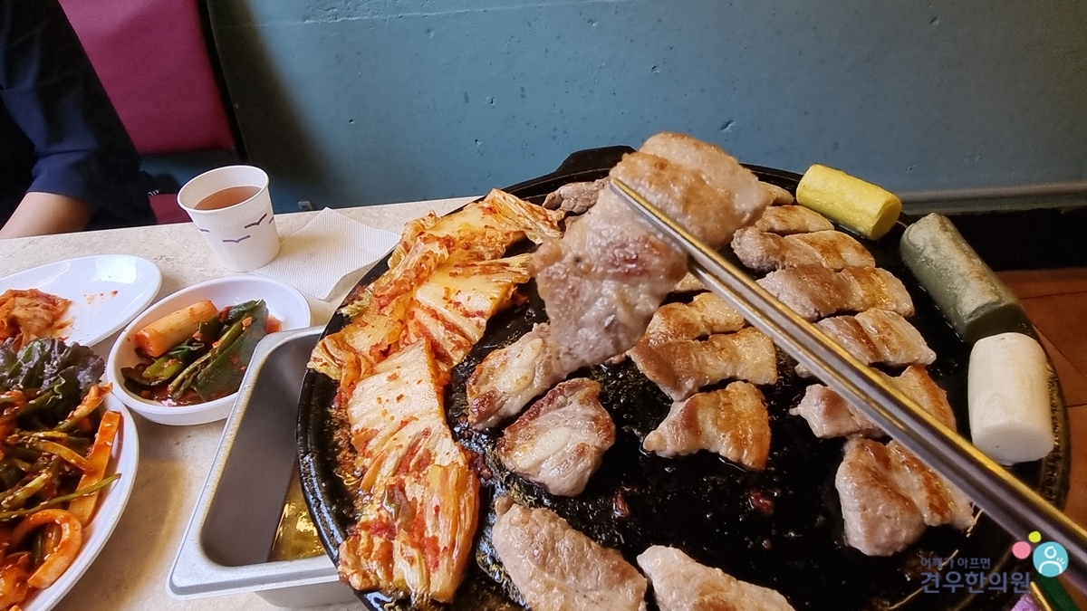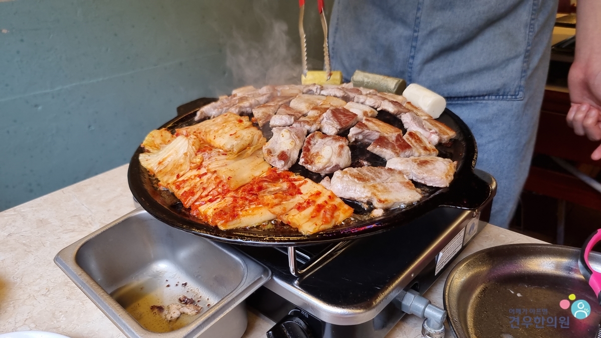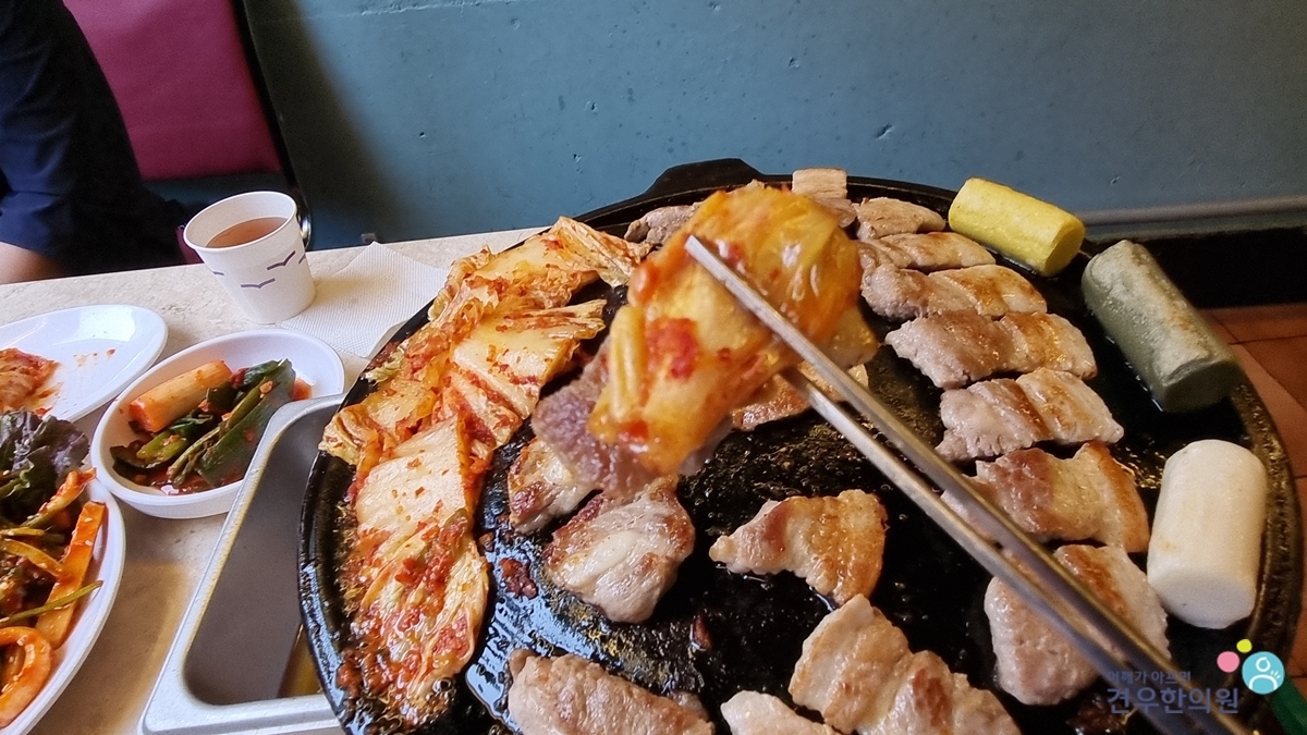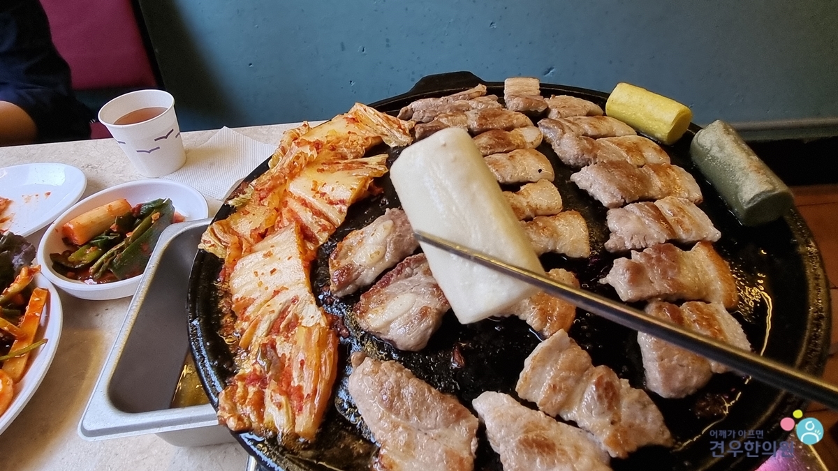 구운 김치와 더불어 먹으면