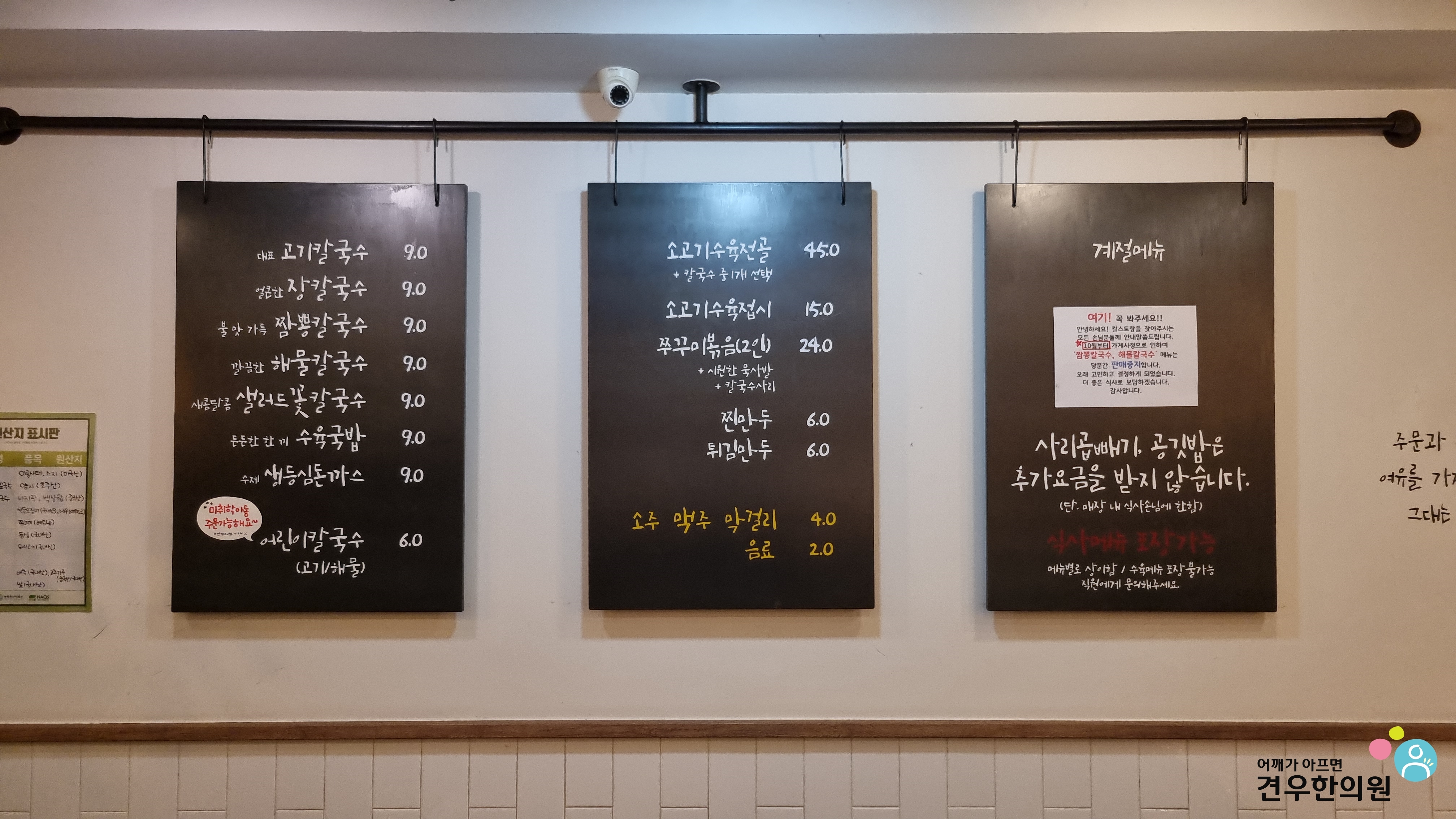 샐러드칼국수, 고기칼국수, 장칼국수,
