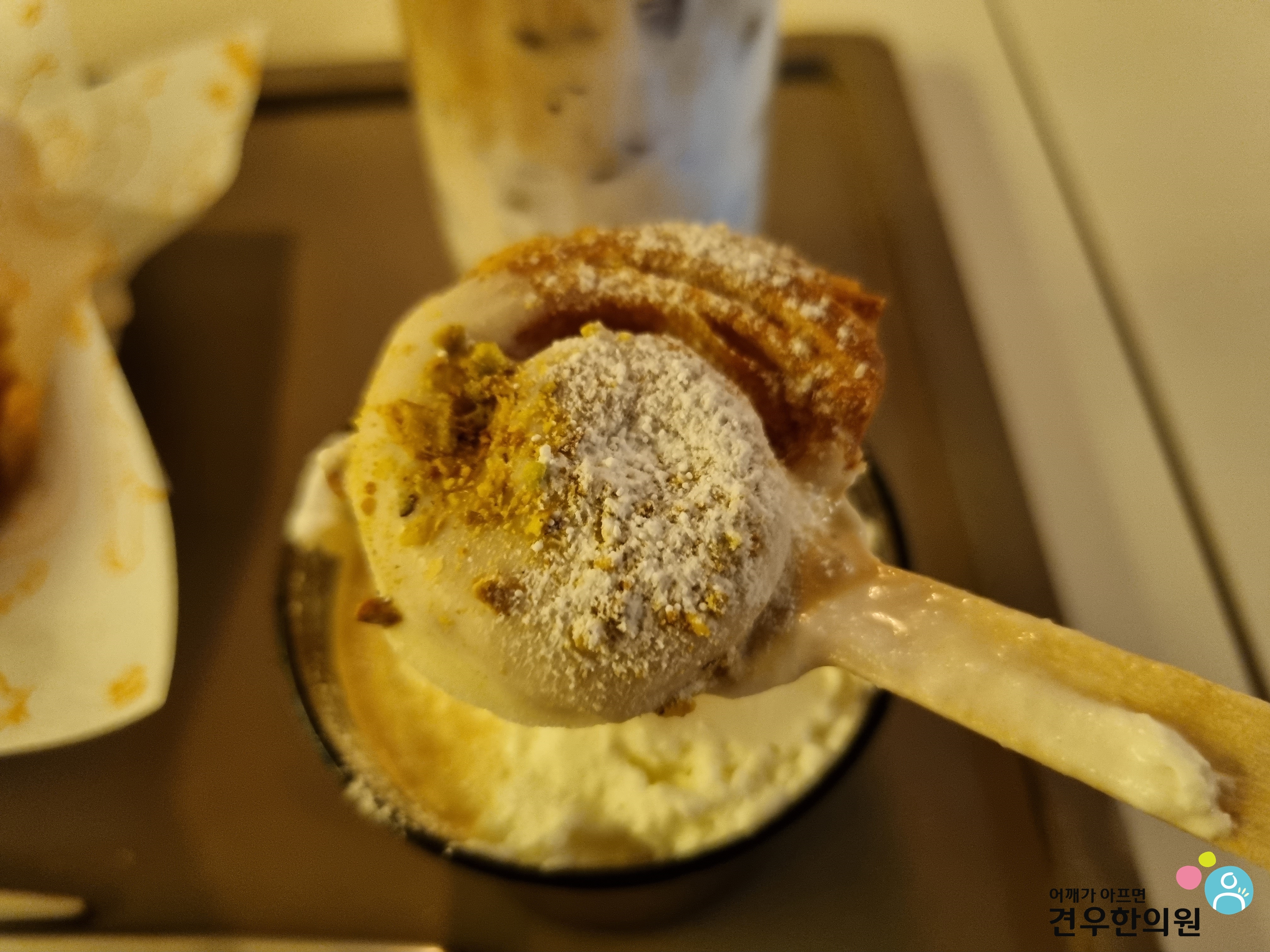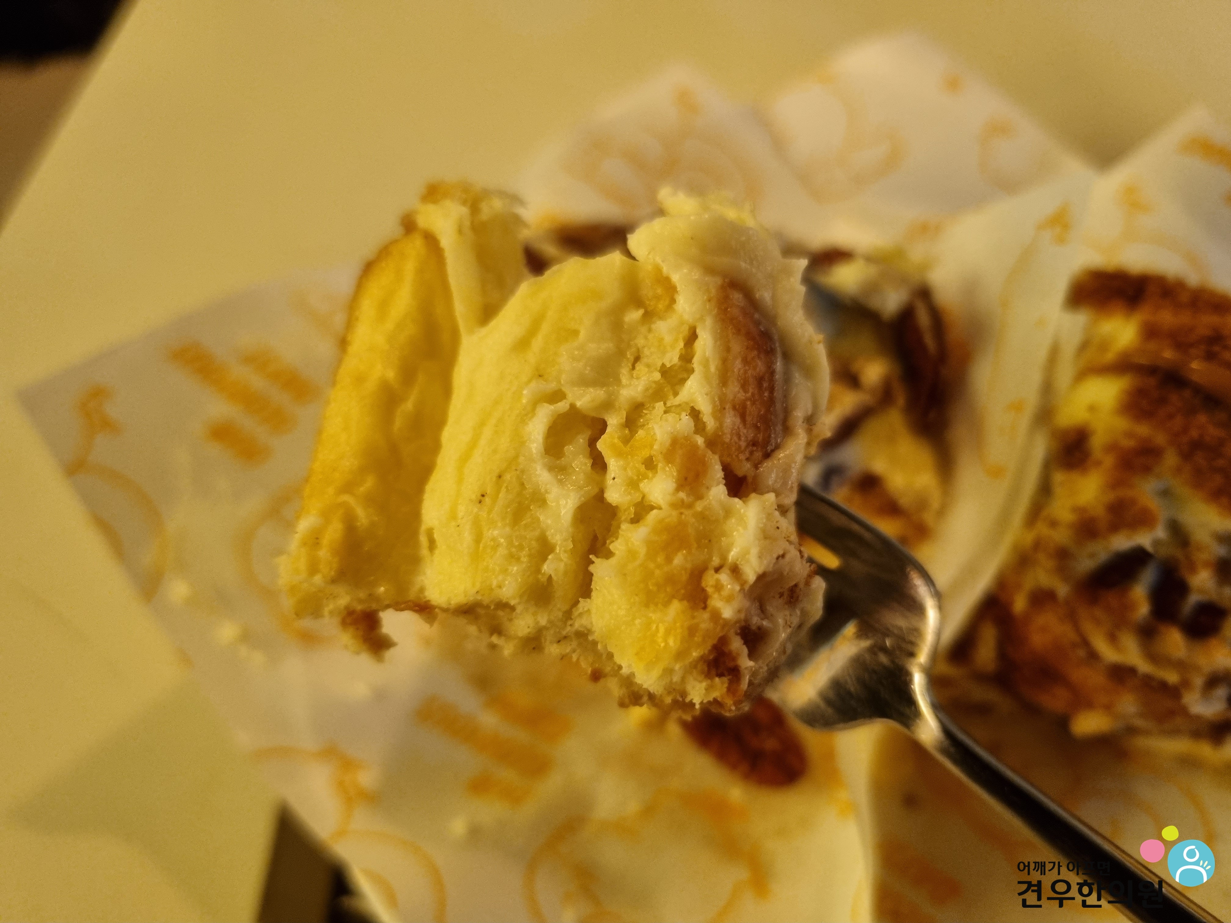 크림을 조금 떠서 맛을 본 다음