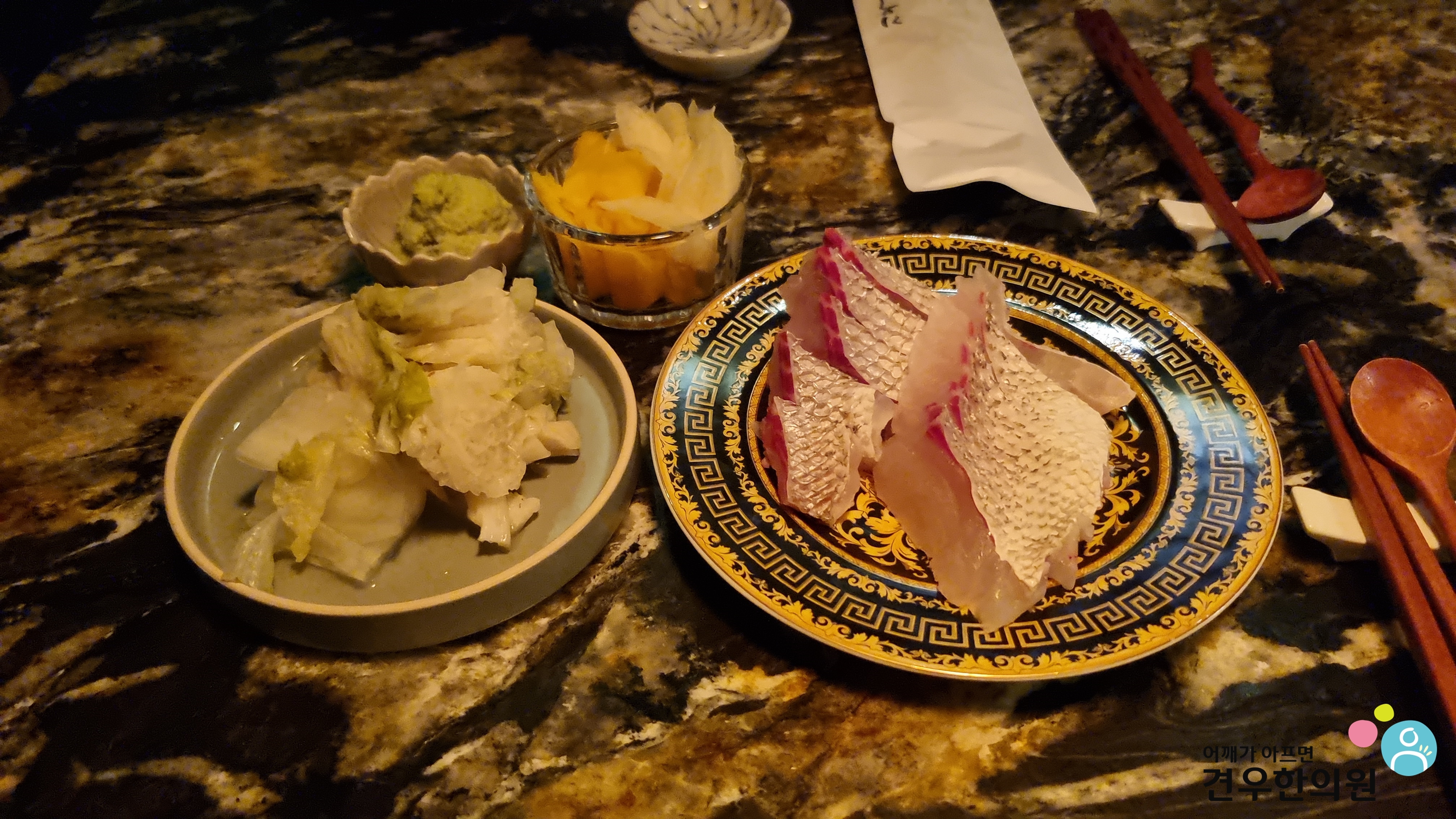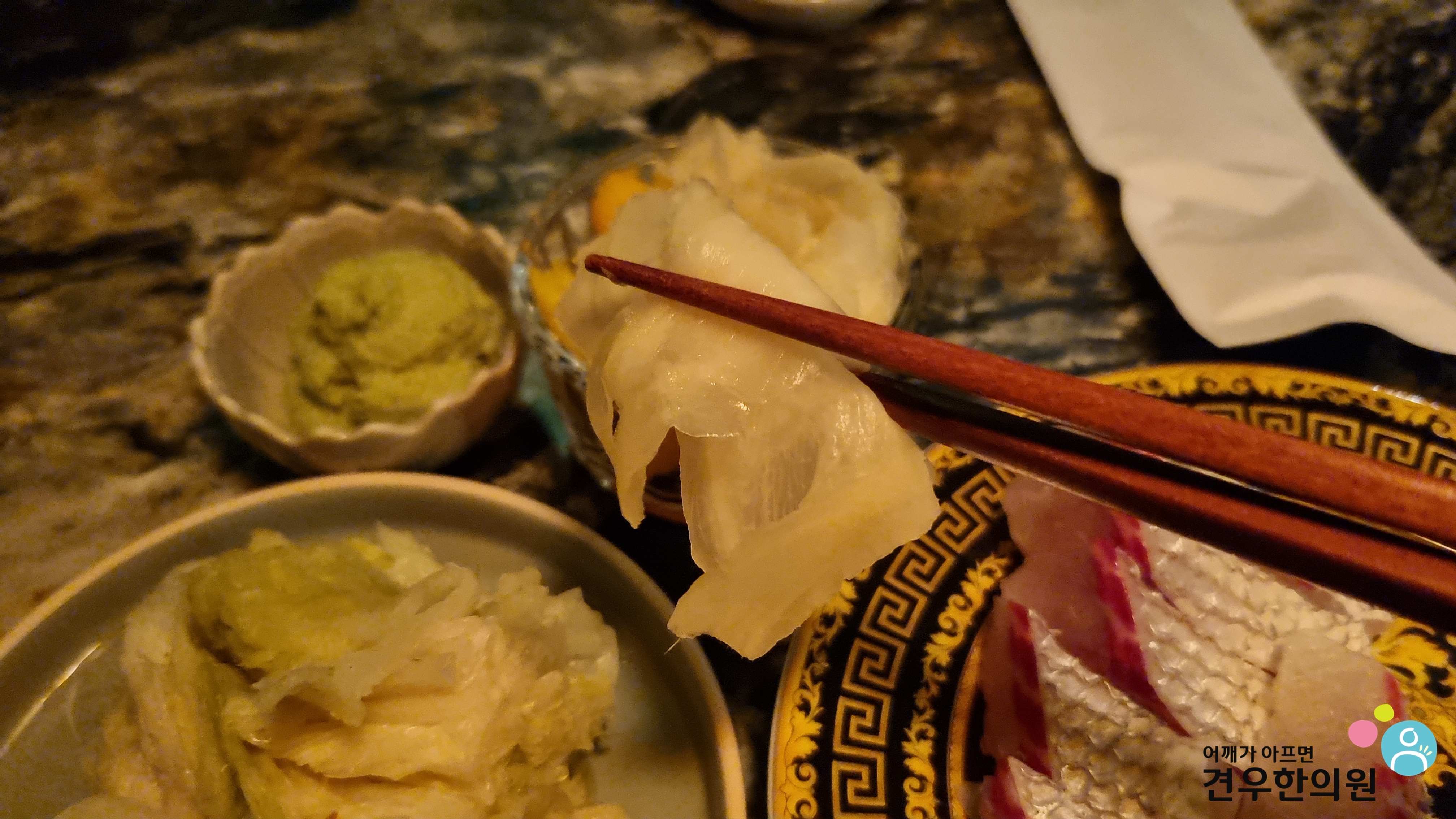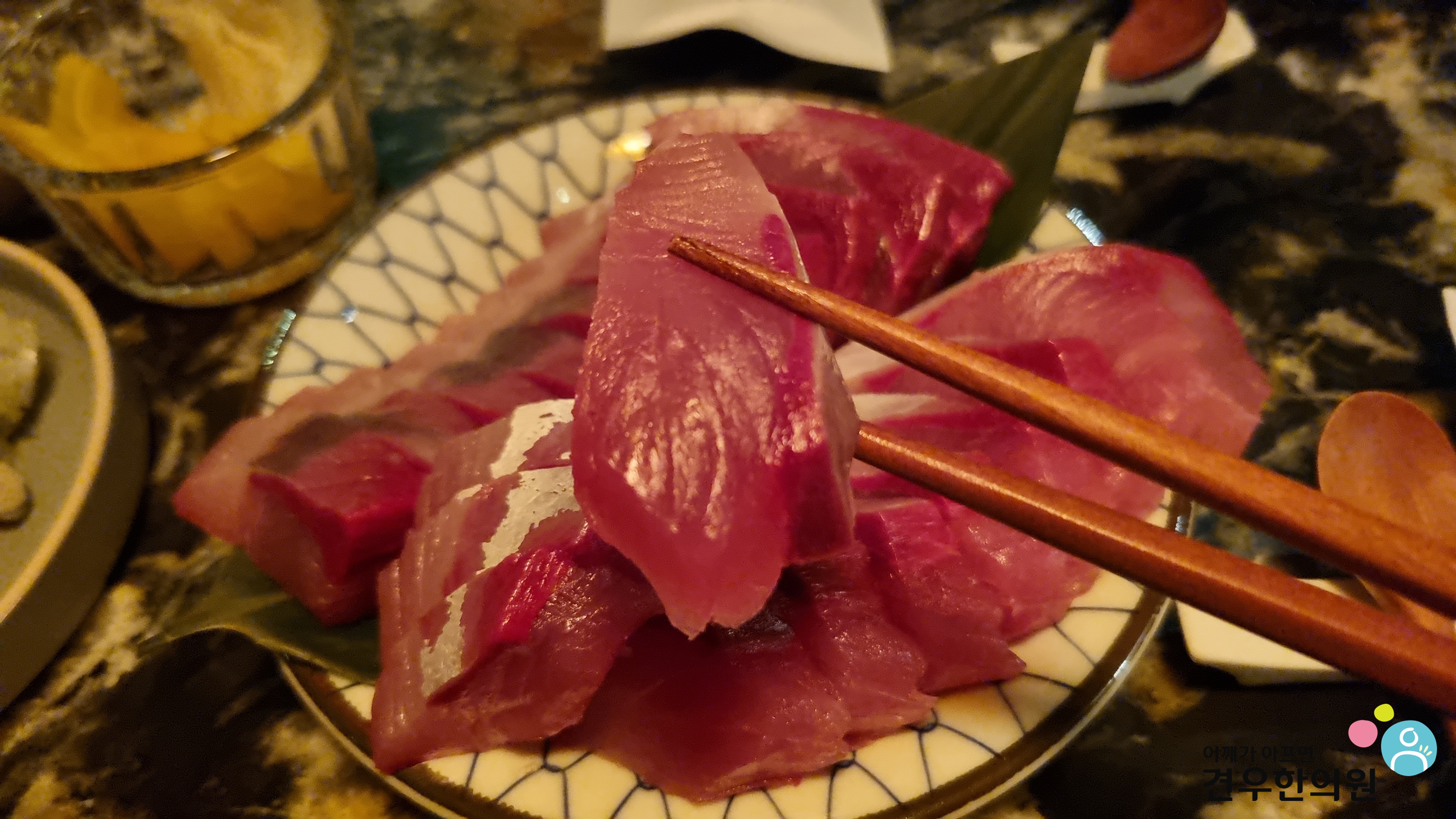 생선회를 맛보면서