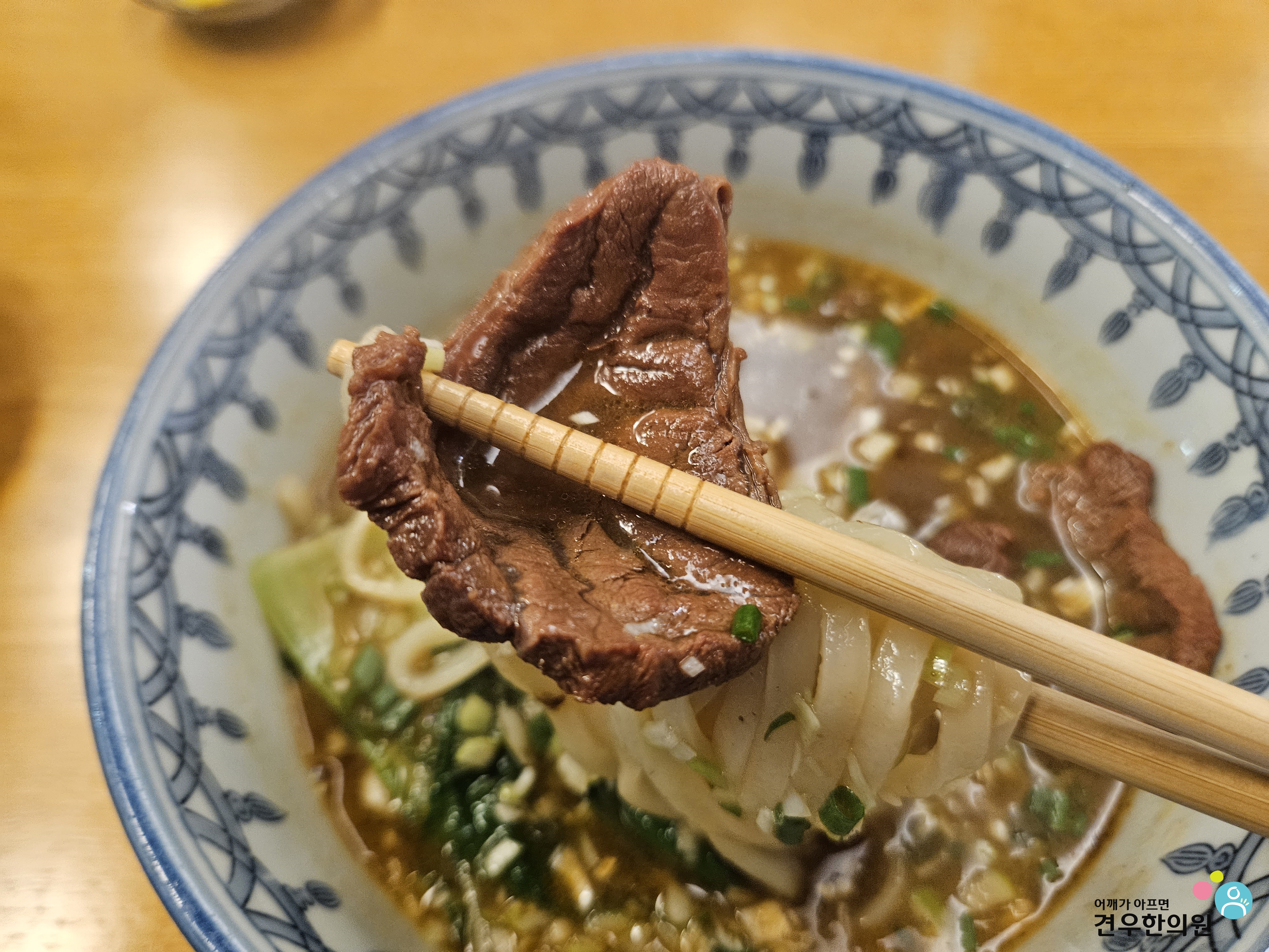사골로 우려낸 육수에 아롱사태와