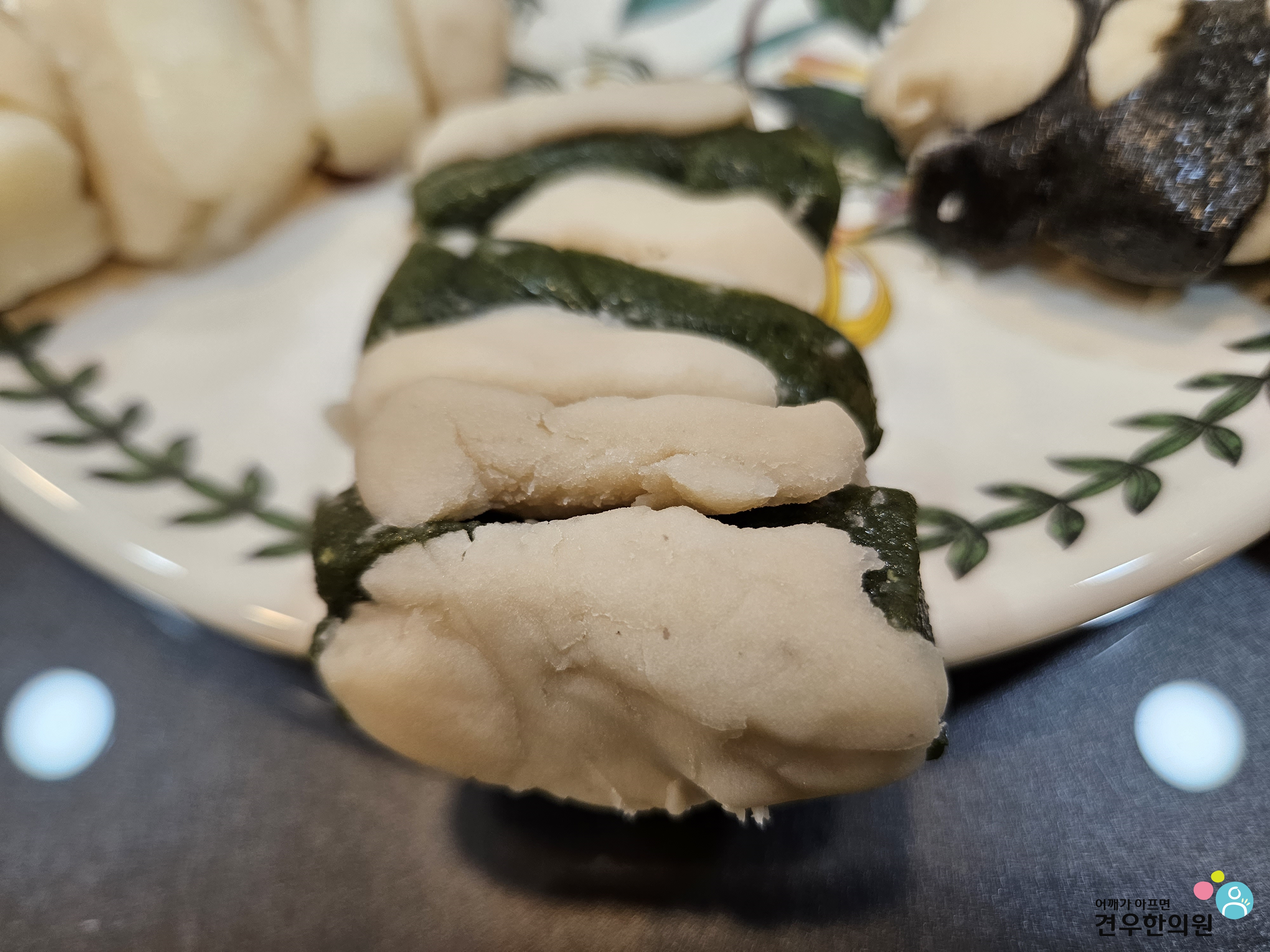 흰, 쑥, 흑임자로 구성된 인절미