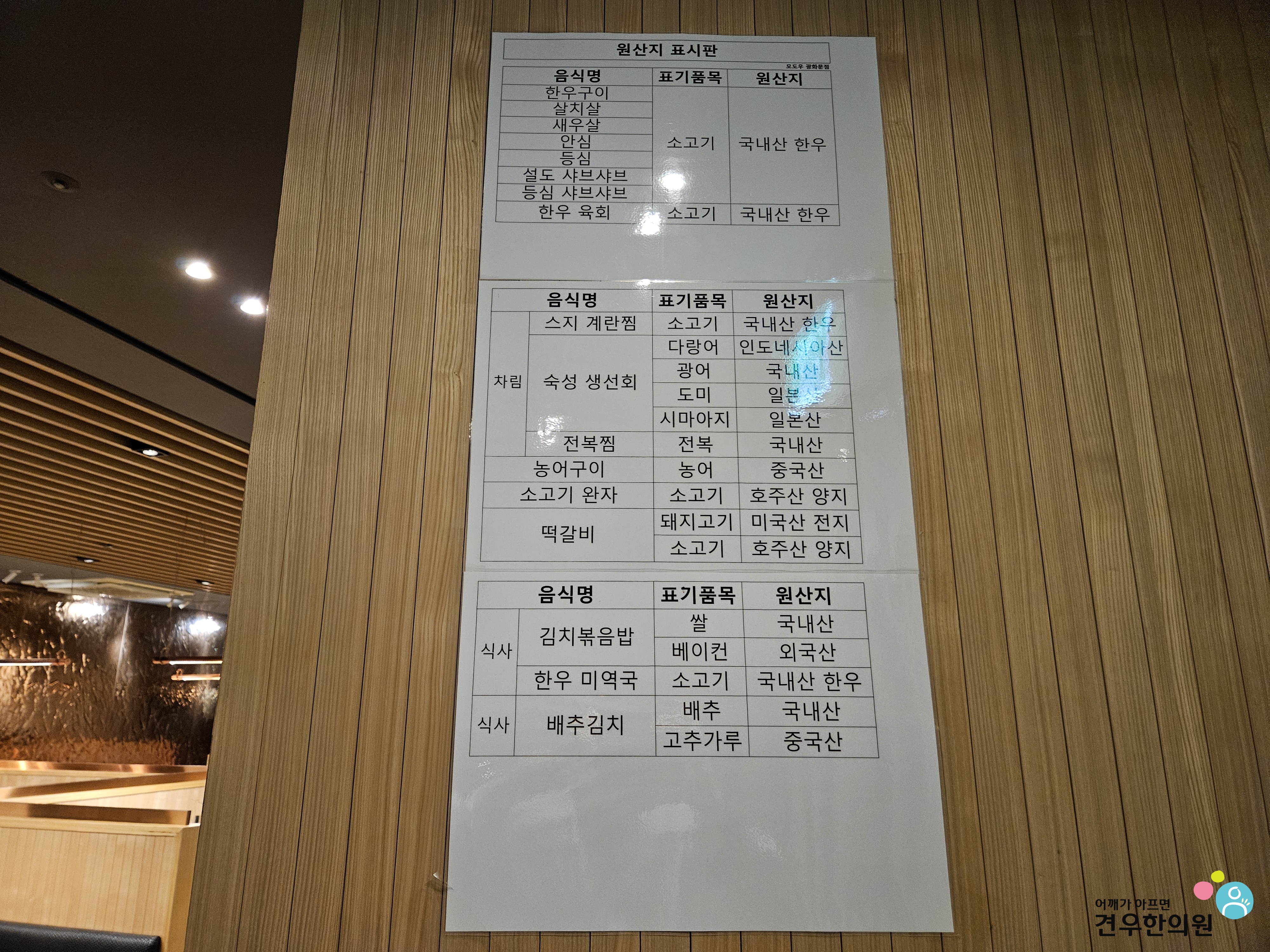 모도우 원산지 표시판